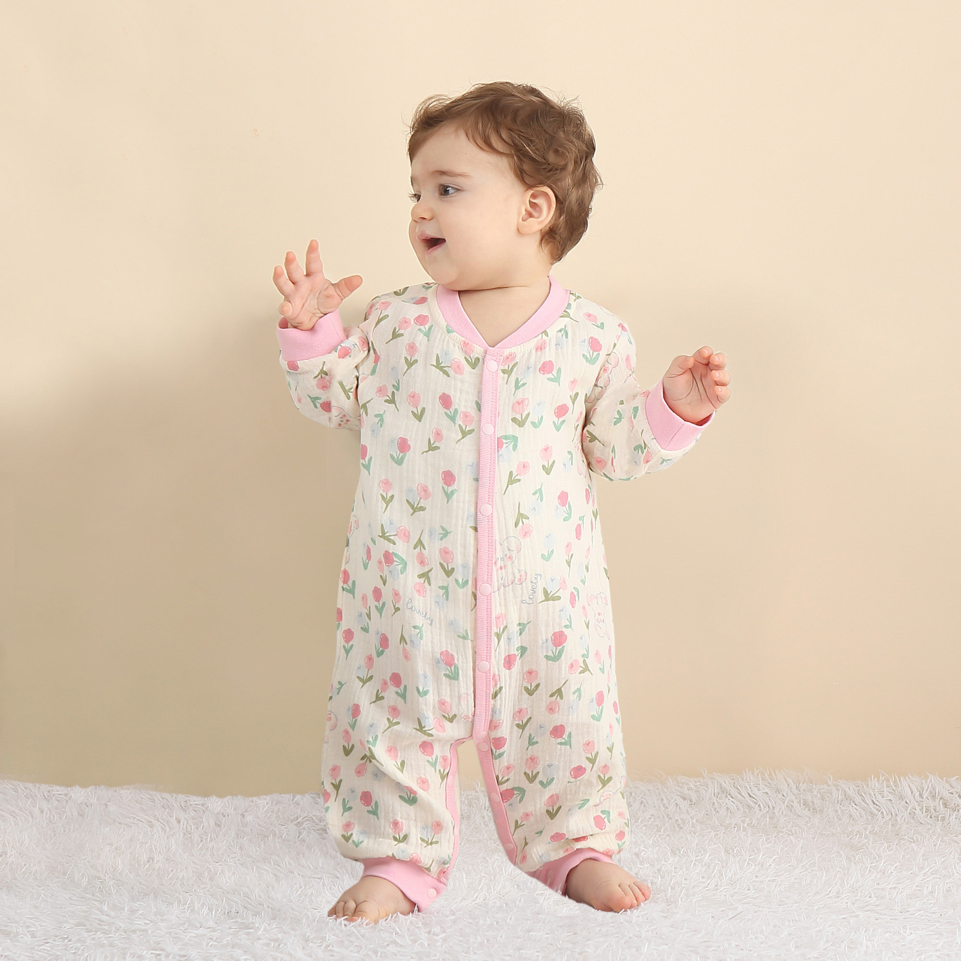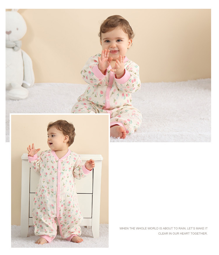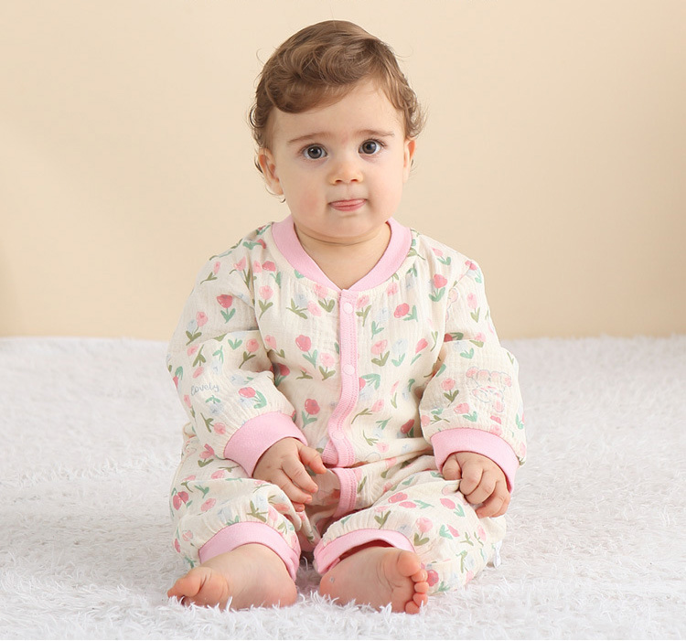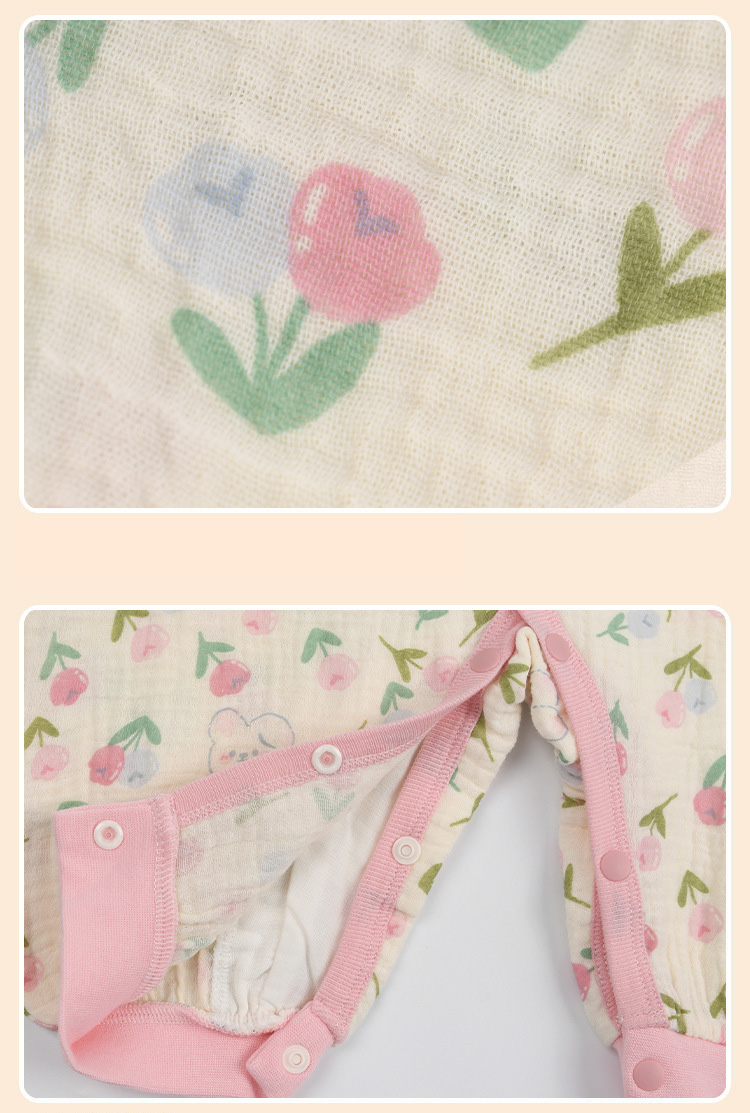 ・ロンパースの股部分はスナップボタン付きだからおむつ替えも簡単にできます。