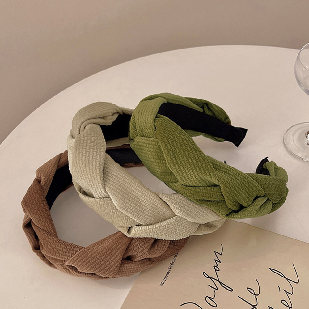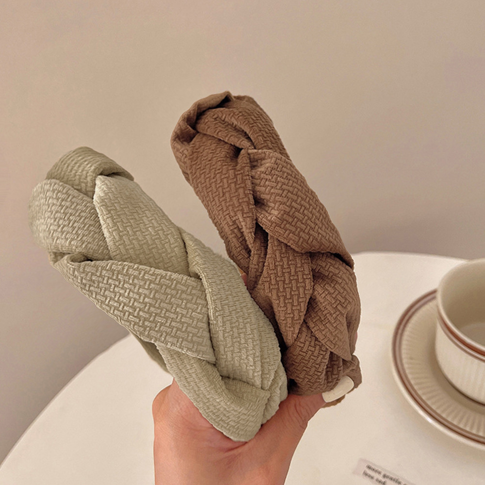 編み込みデザインがエレガントな印象を与え、髪飾りとしての存在感を際立たせる