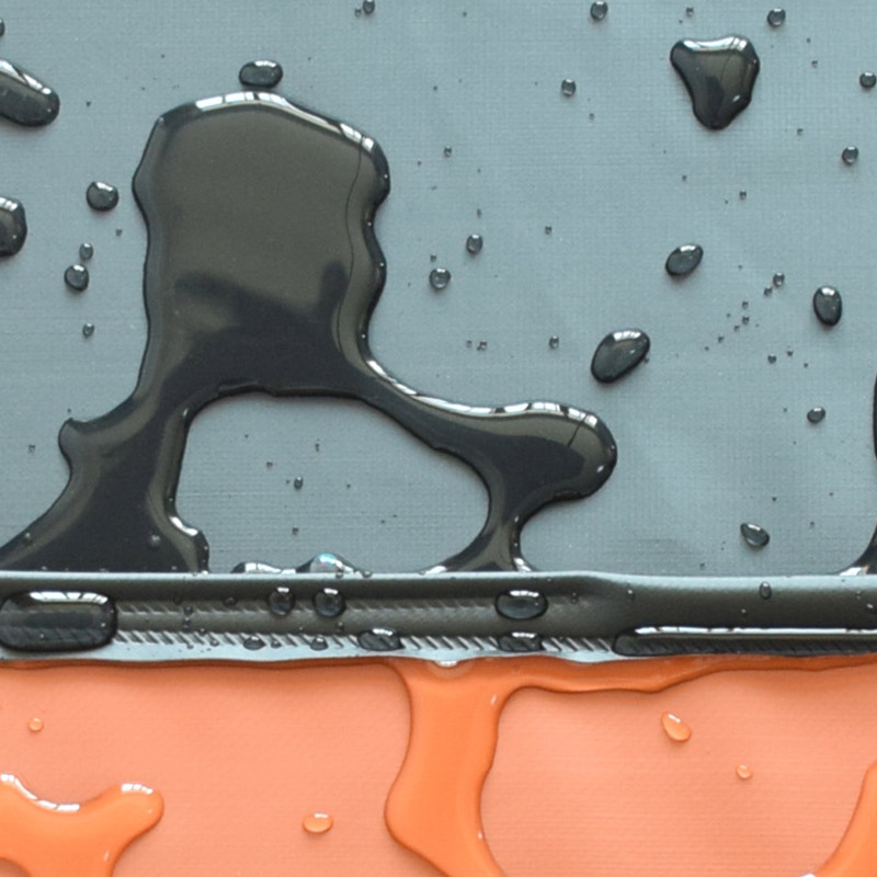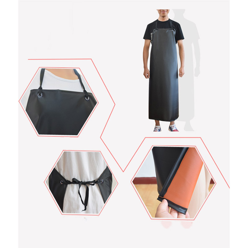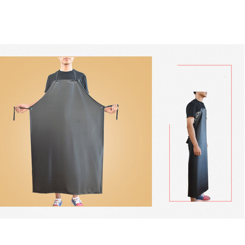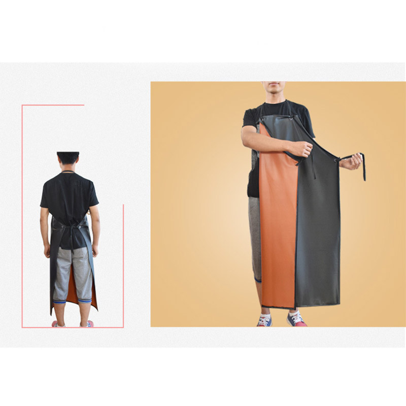 H型エプロン ロング丈のポリエステル生地は通気性に優れ、水や汚れに強い撥水加工