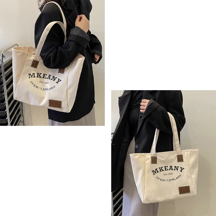 英字ロゴデザインがおしゃれなキャンバストートバッグ。
