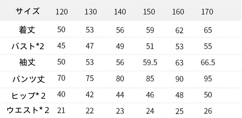 サイズ 120CM 130CM 140CM 150CM 160CM 170CM