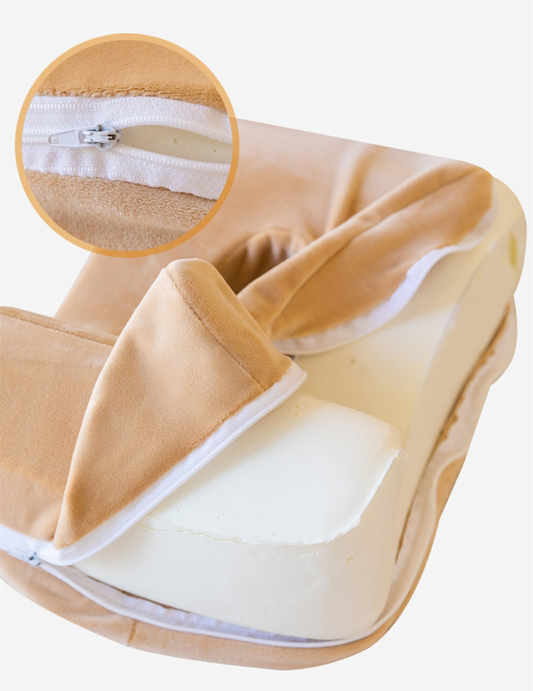 3.「お昼寝枕のデザイン」人間工学に基づいた設計で、3D構造は頸椎を完全にサポートおよびケアし、頸部の痛みと手のしびれを効果的に避けることができます。真ん中の中空のデザインは、寝るときに顔への圧力とよだれを防ぎ、快適に使用できます。