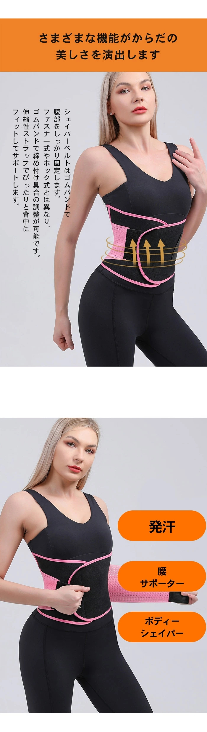 ☆二重ベルトが更に固定力をアップ、前かがみや持ち上げの動きにも安心感が得られます