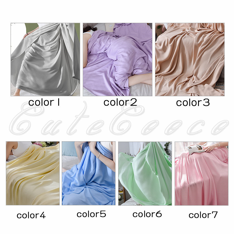 エアコンと併用しこれ一枚で寝冷え防止に、軽い掛け心地でべたつかずにサラッと快適する。