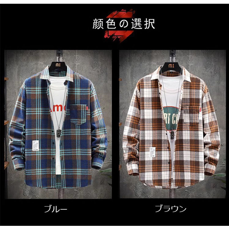 チェックシャツ メンズ おしゃれ 秋服 秋物 長袖 ネルシャツ 胸ポケット カジュアルシャツ ビジネス 薄手