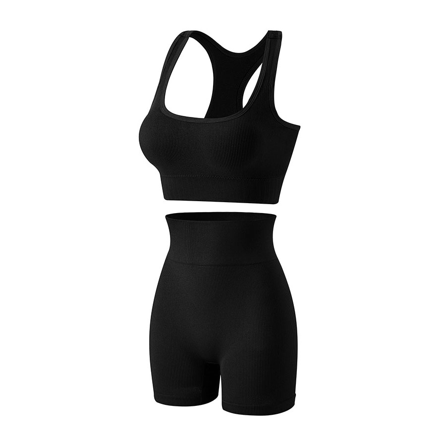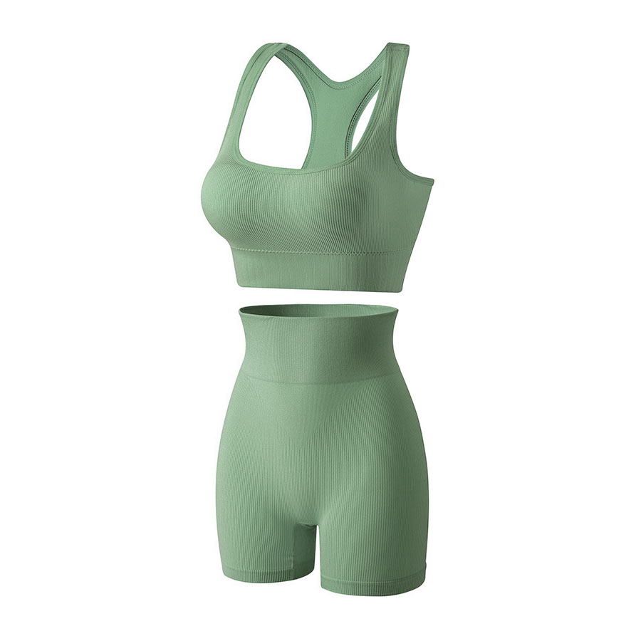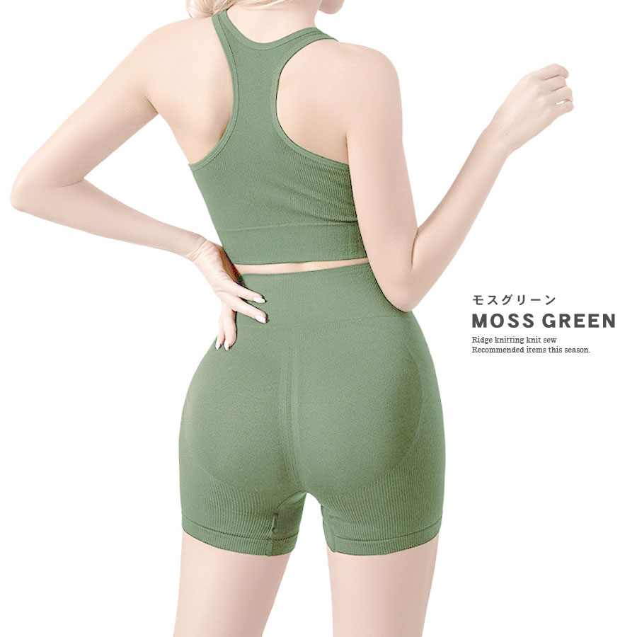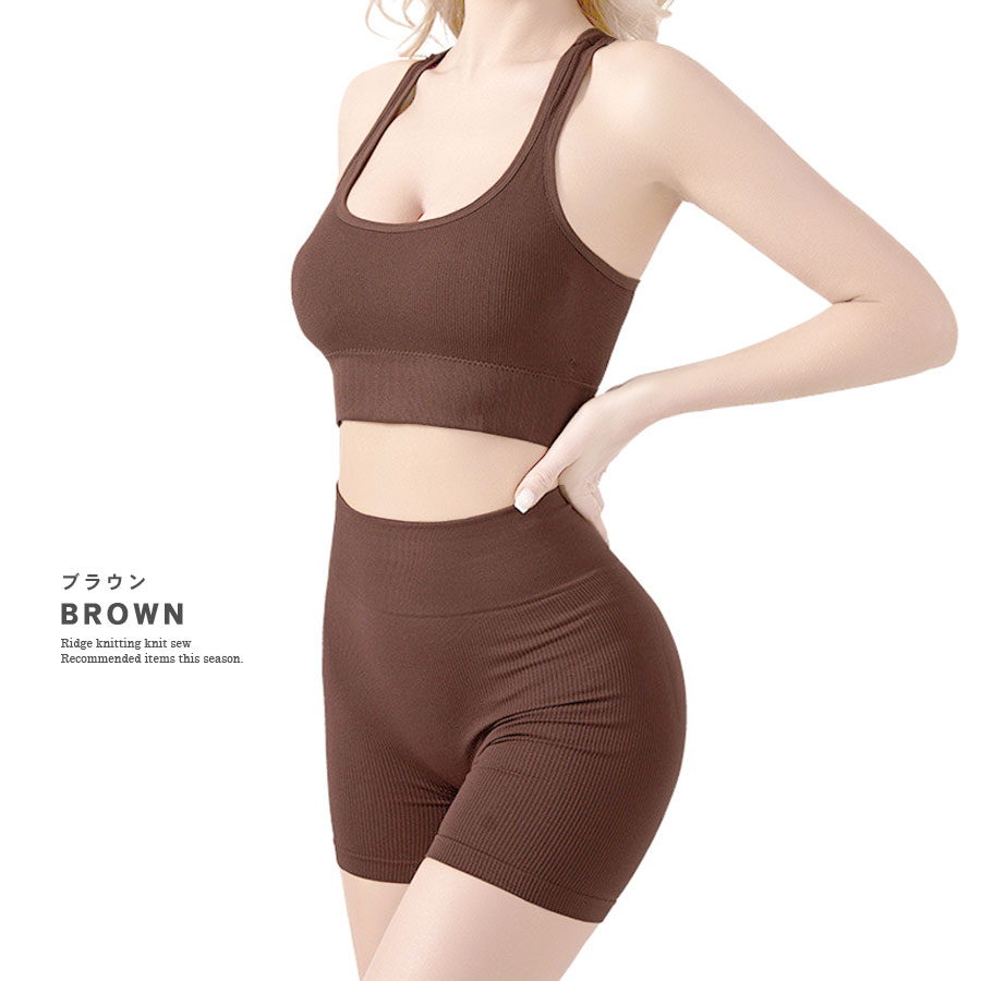 スポーツブラ レギンス 上下セット フィットネスウェア 2点セット バッククロス ブラ スパッツ インナー ナイトブラ セットアップ 揺れない リブ ウエスト 2分丈 ノンワイヤー 伸縮性 ストレッチ ヨガ ジム スポーツ 運動