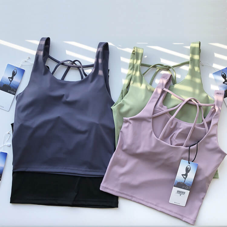 ヨガウェア タンクトップ ホットヨガ スポーツインナー 無地 トップス Uネック 長め 体系カバー スポーツブラ シンプル ノースリーブ