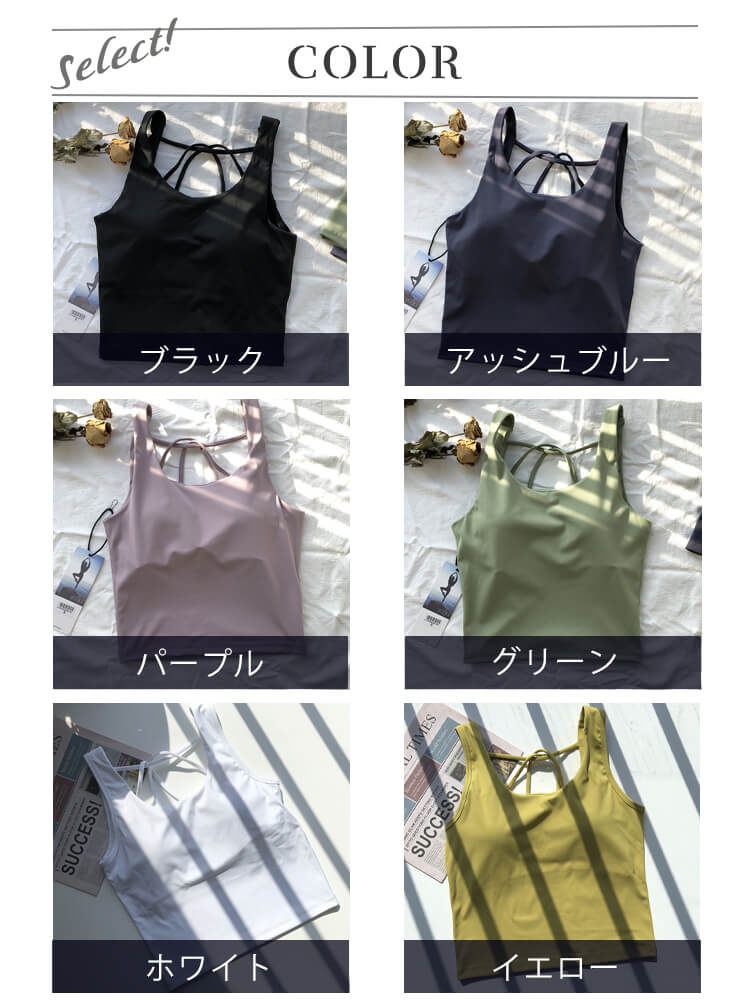 ヨガやランニング、フィットネスやスポーツウェアのトップスとして。