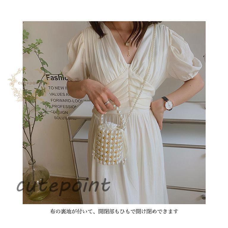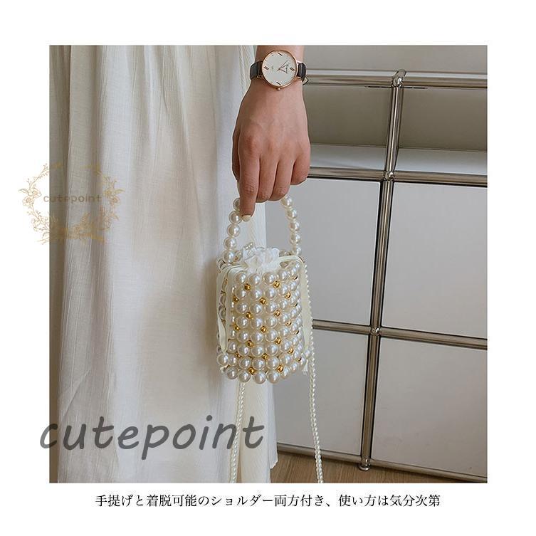 ショルダーバッグ レディース パールバッグ スマホポーチ ミニバッグ ショルダーポーチ 斜め掛け ポシェット 円柱型 ビーズバッグ ハンドバッグ 手提げ お洒落 エレガント パールポシェット ファッションバッグ パールポーチ