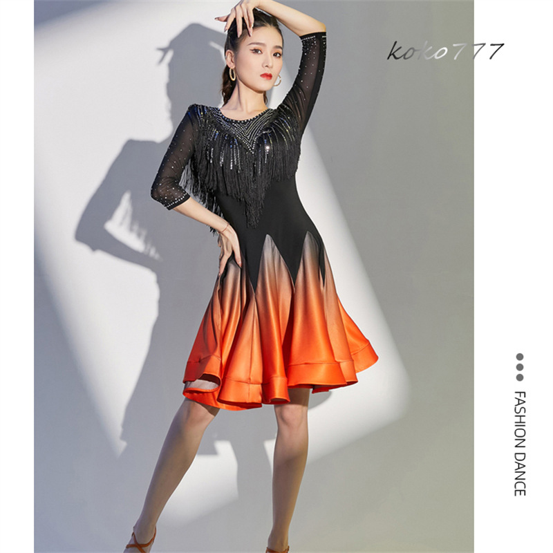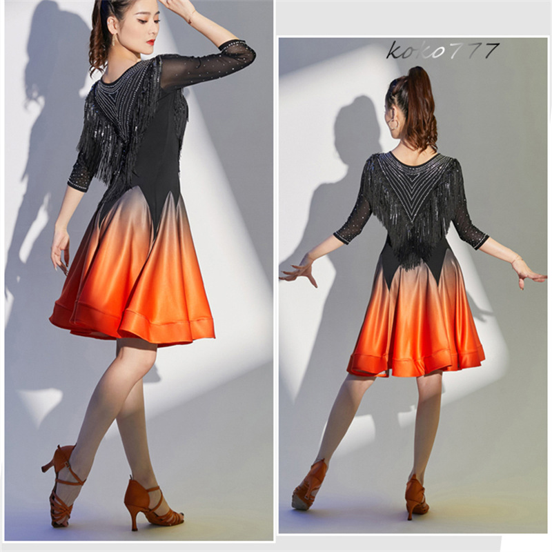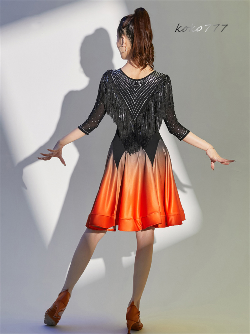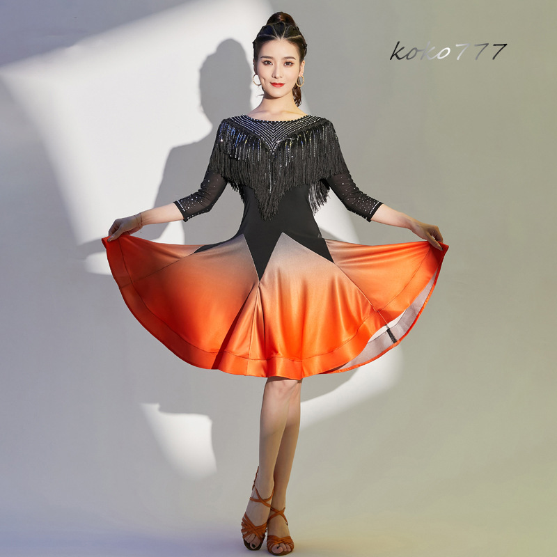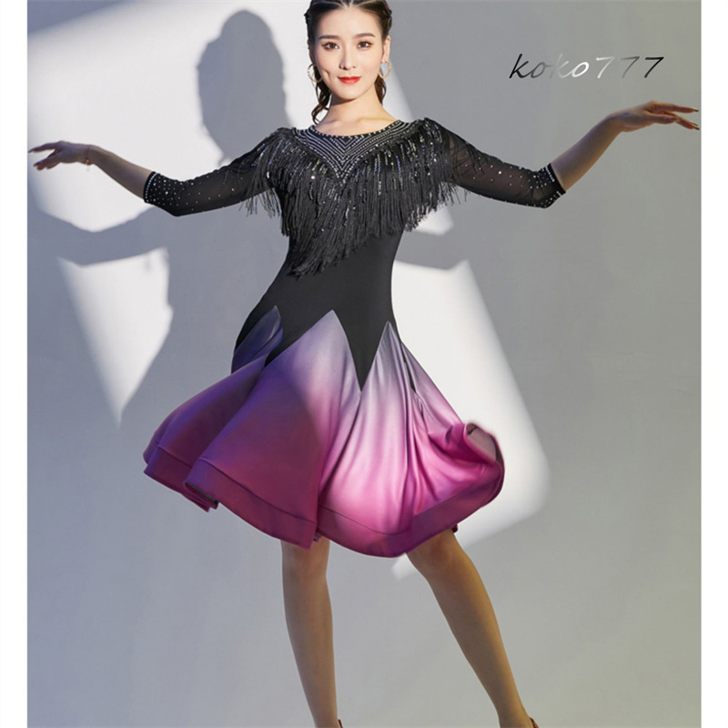 ドレス レディース ワンピース ラテンダンス ラインストーン フリンジ 発表会 洋服 公演 モダンダンス ワルツ パーティー 舞台衣装 コスチューム ひざ丈
