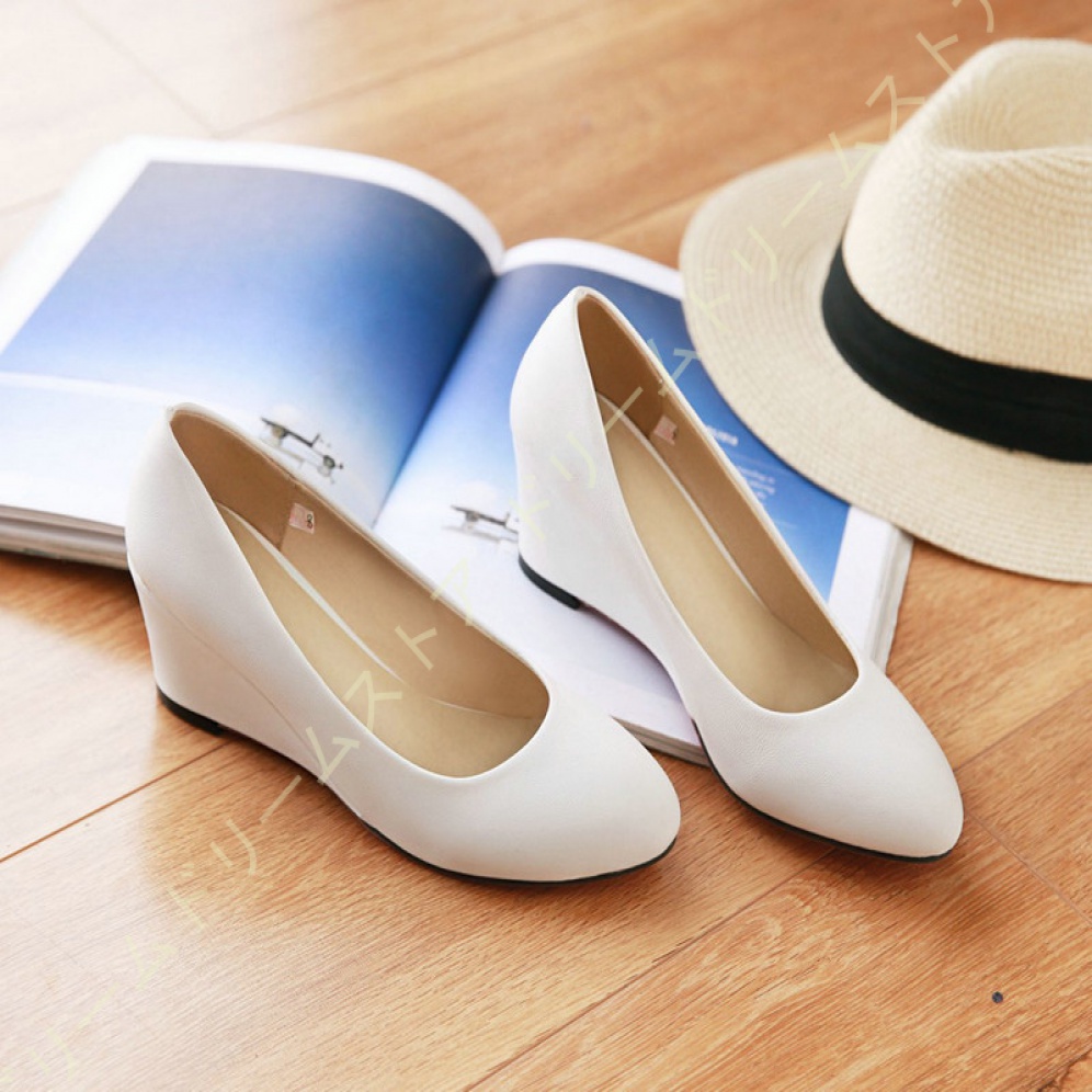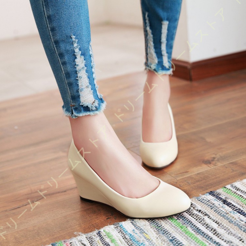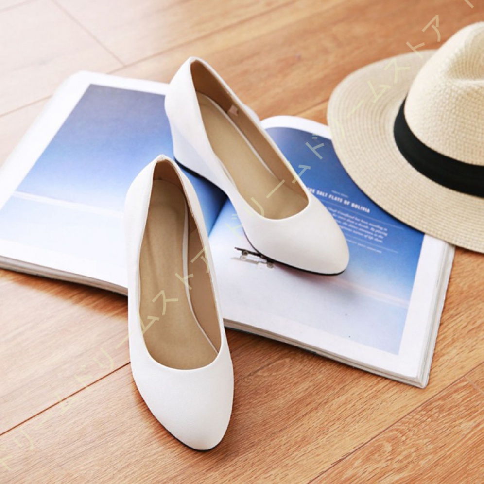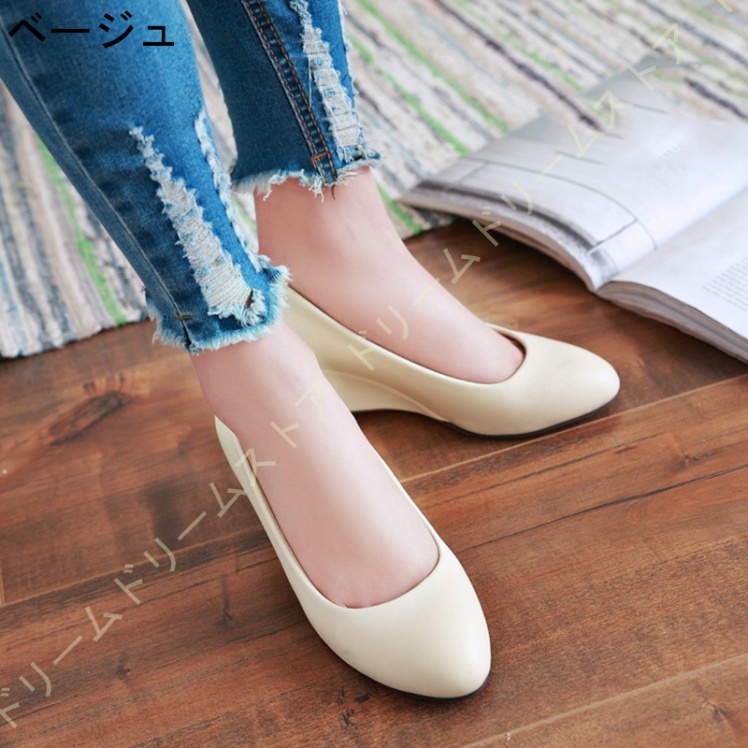 歩きやすく履きやすいウェッジヒール。ストームがついている、高低差を緩和し、足への負担を軽減。