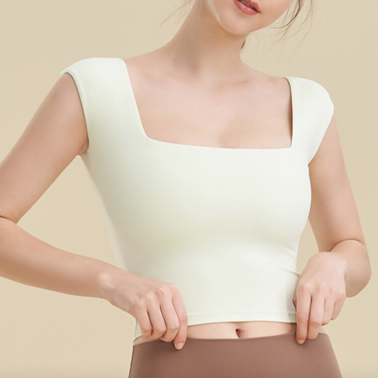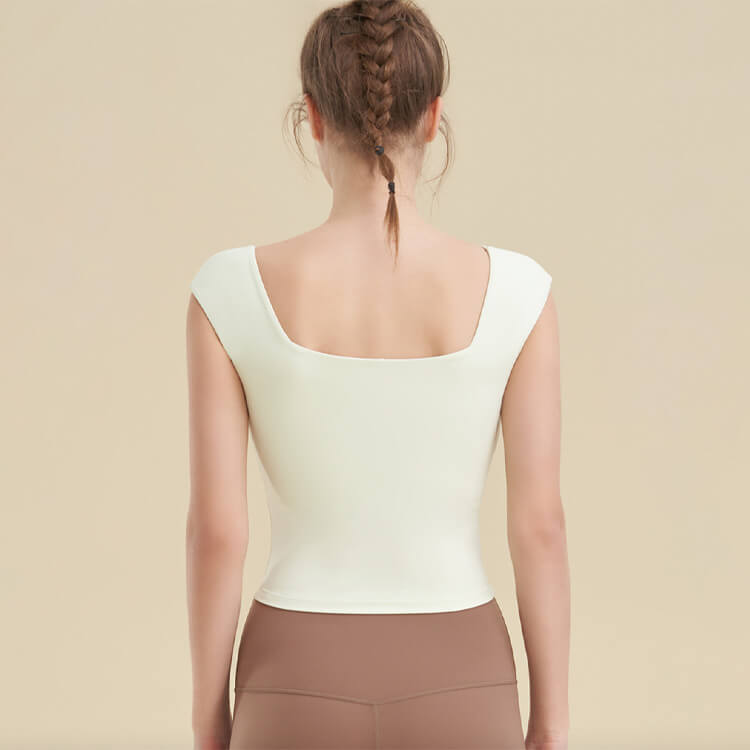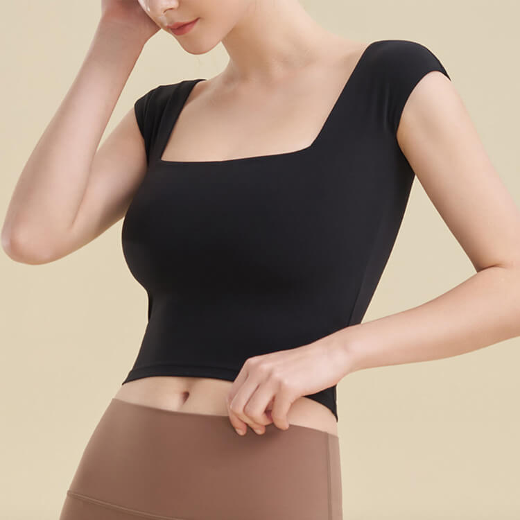 ホットヨガにおすすめ!スクエアネックのシンプルスポーツタンクトップヨガウエア。