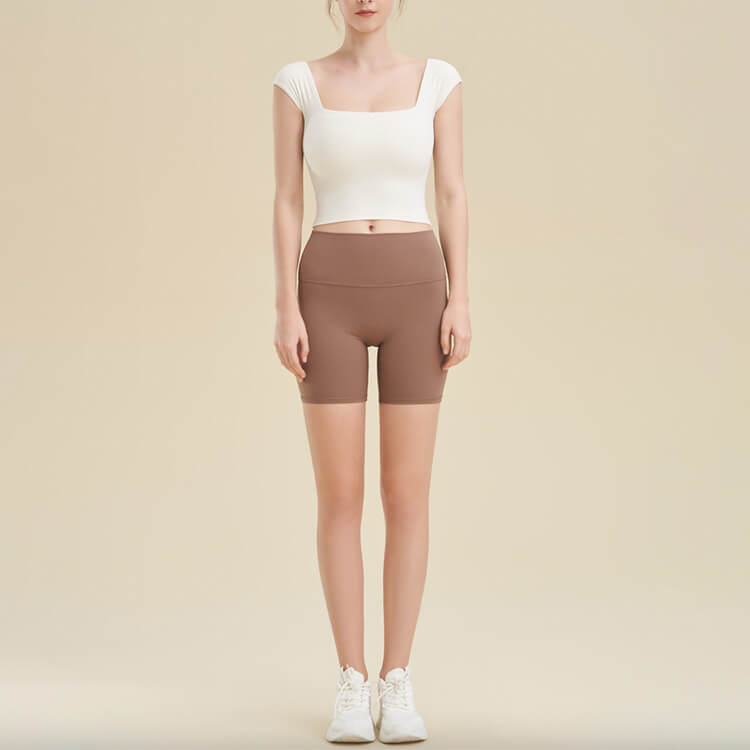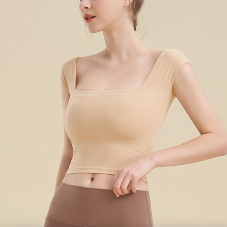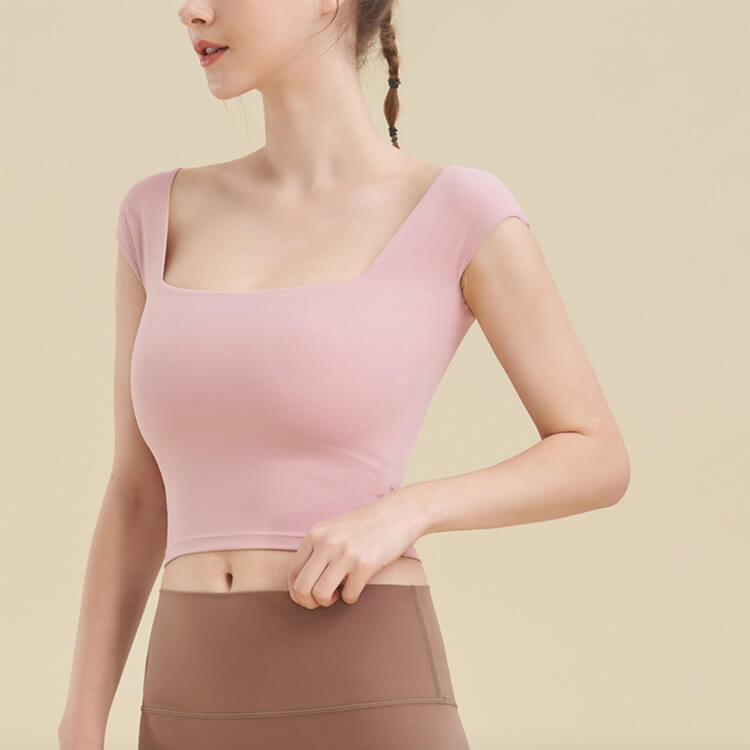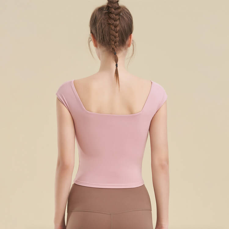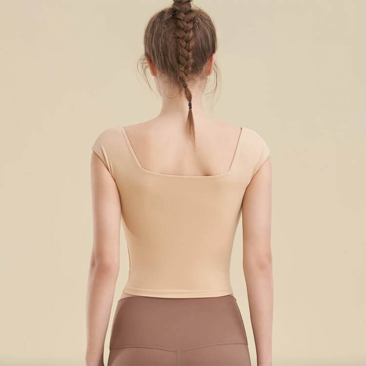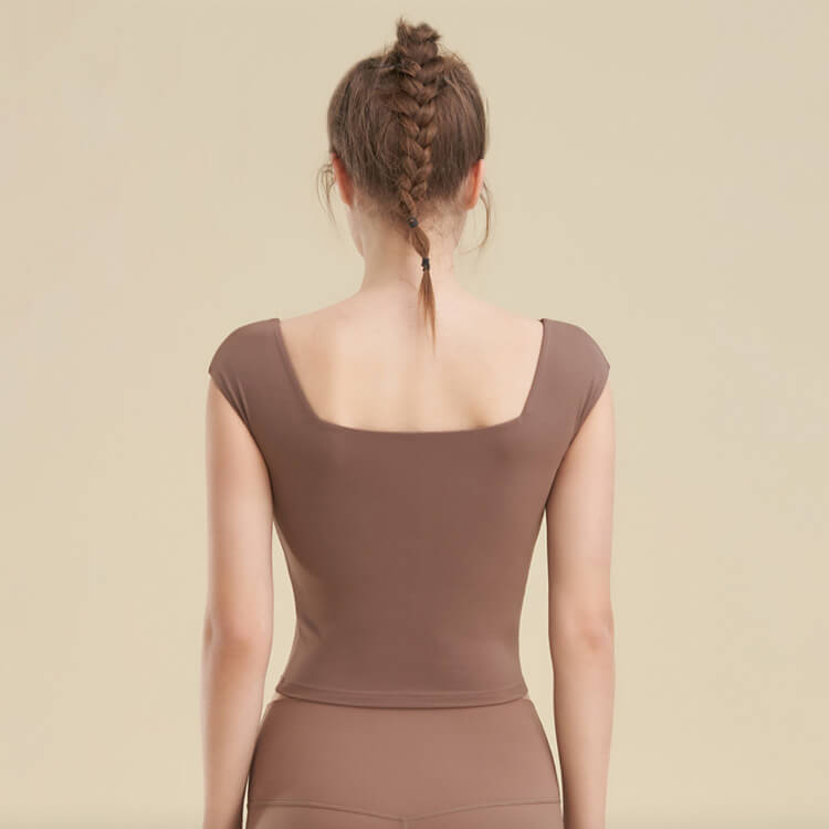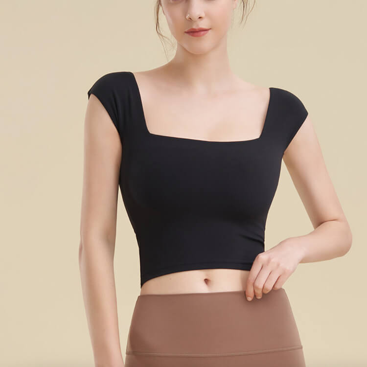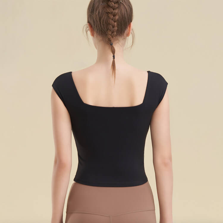 前後スクエアネックですっきりとした長めのヨガトップス。
