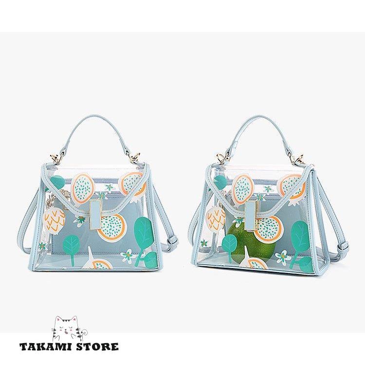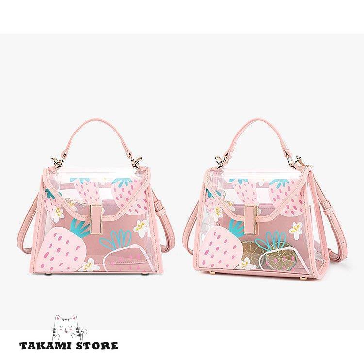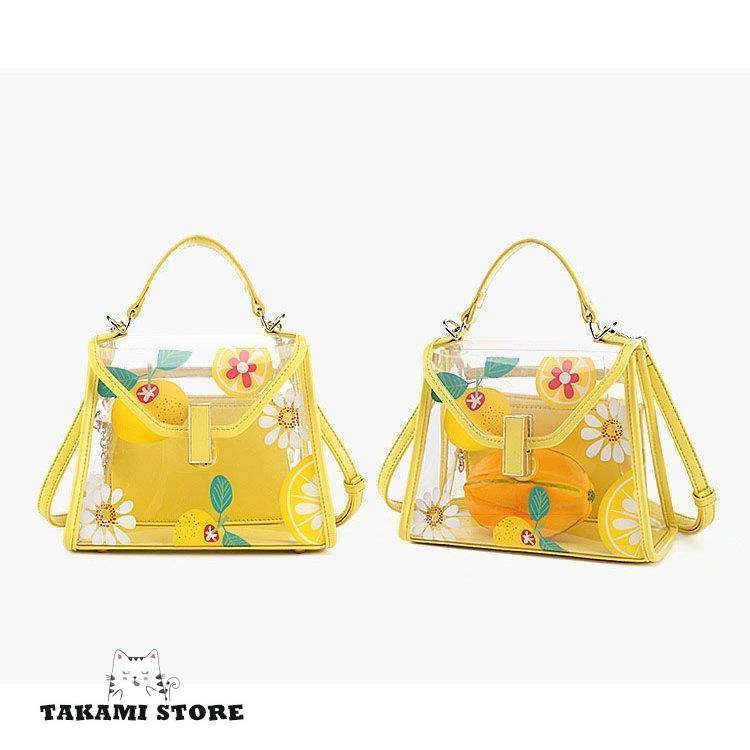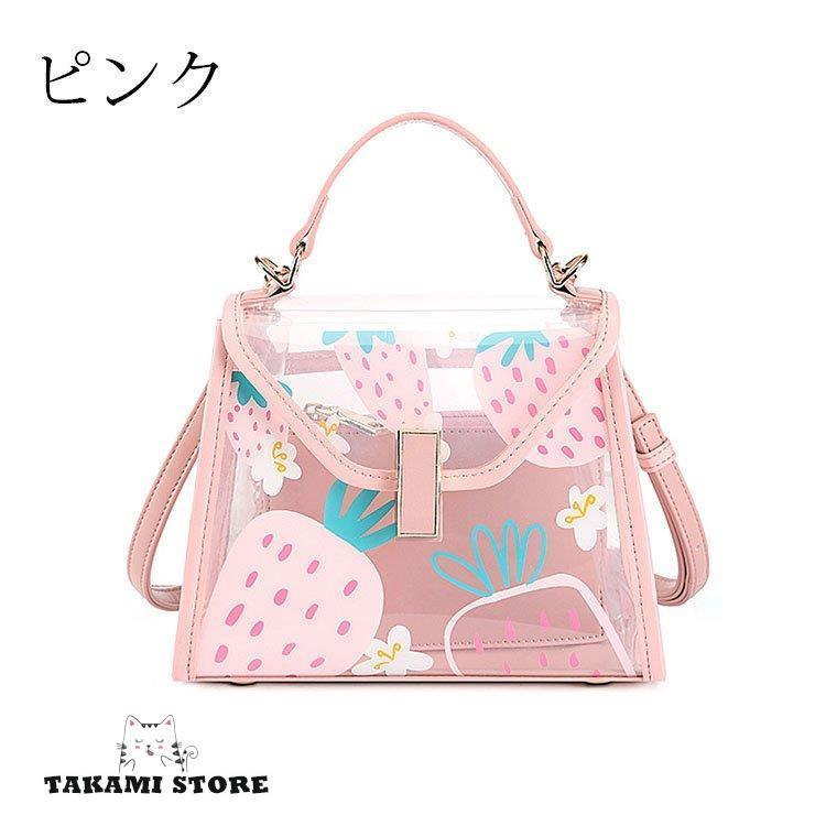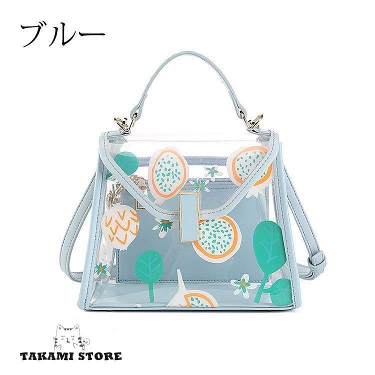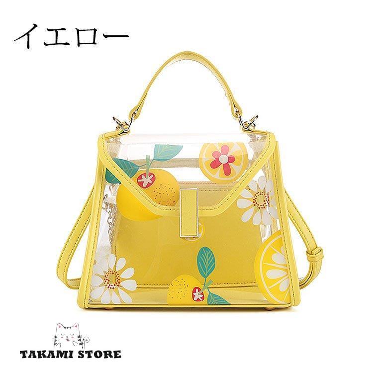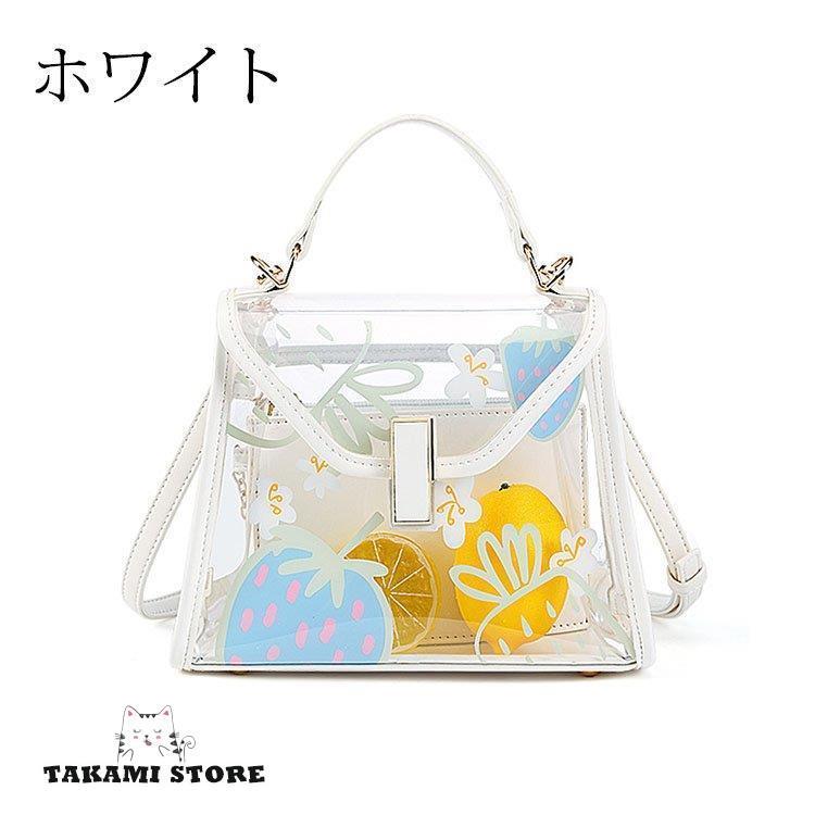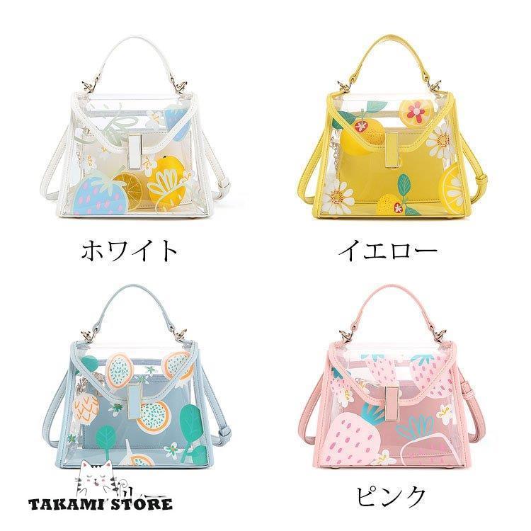 クリアバッグ 果物柄 透明バッグ ストローポーチ付 トートバッグ ハンドバッグ 防水 大容量 かごバッグ ショルダーバッグ 肩がけバッグ ビニールバッグ