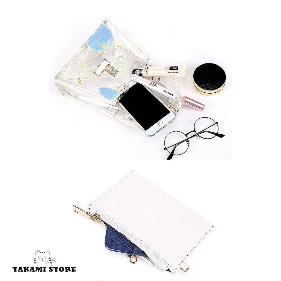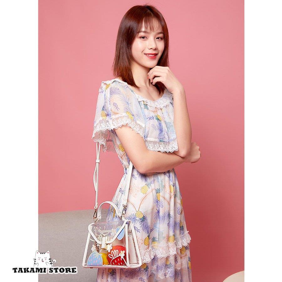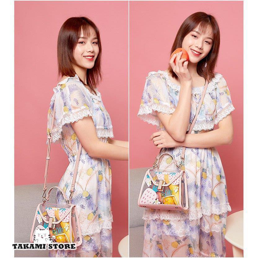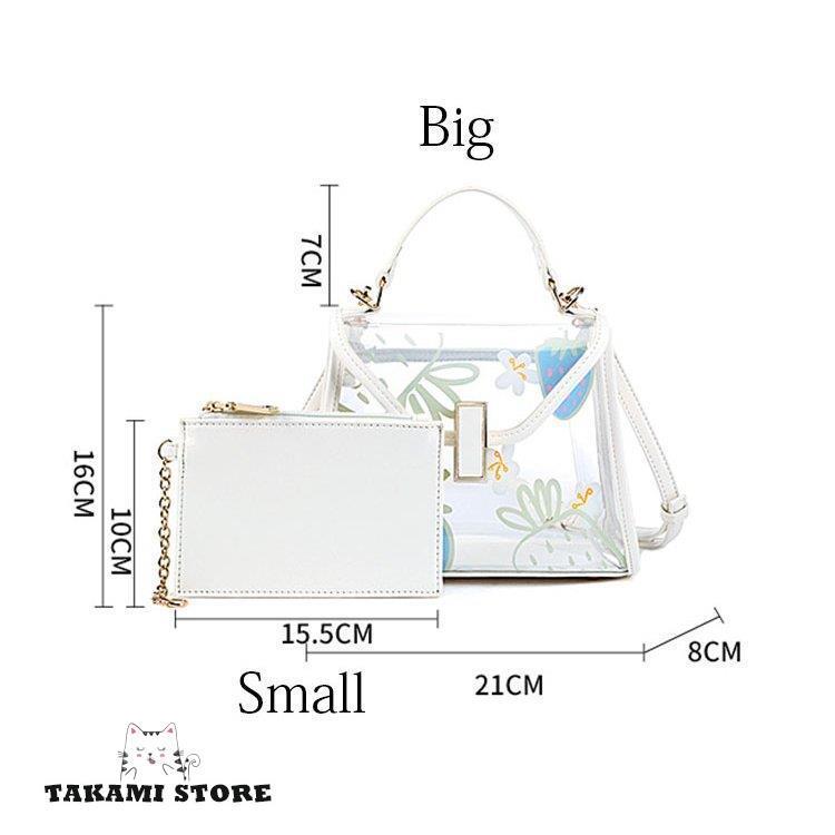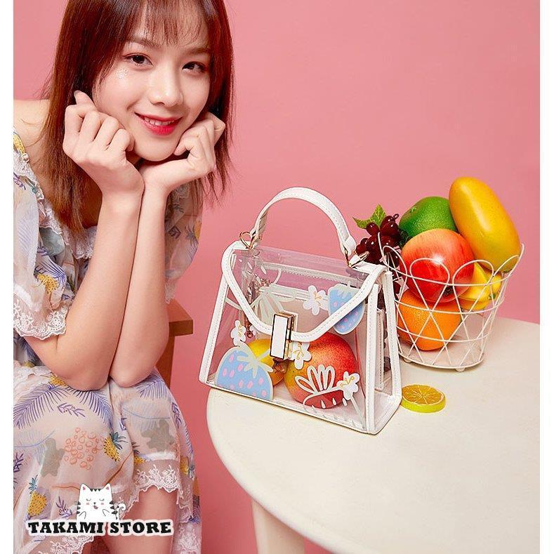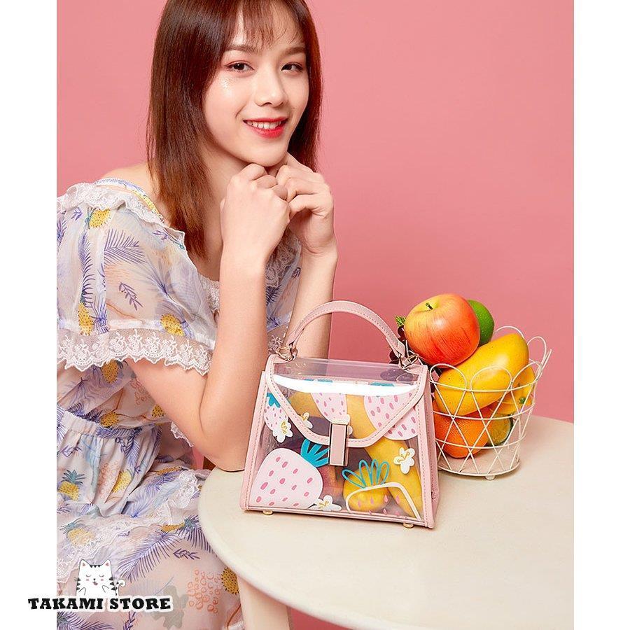 クリアバッグ 果物柄 透明バッグ ストローポーチ付 トートバッグ ハンドバッグ 防水 大容量 かごバッグ ショルダーバッグ 肩がけバッグ ビニールバッグ