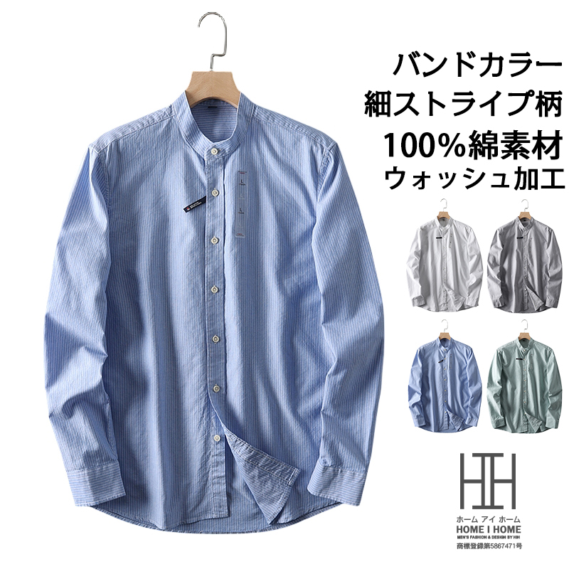 ストライプシャツ シャツ メンズ 長袖 バンドカラーシャツ カジュアル 細ストライプ柄 キレイめ おしゃれ ビジカジ トップス メンズファッション