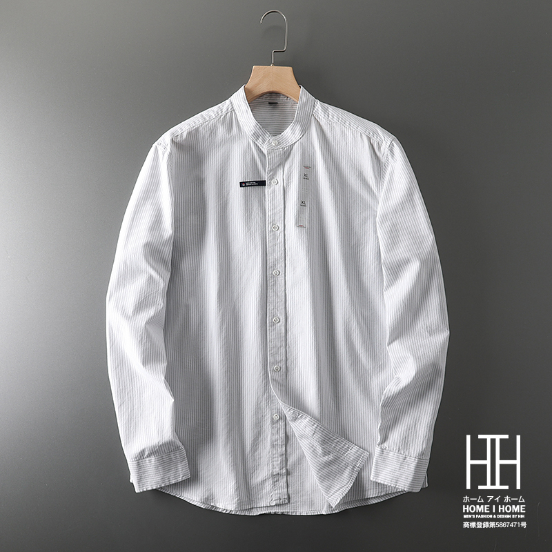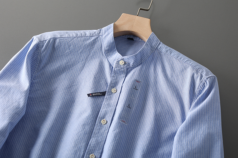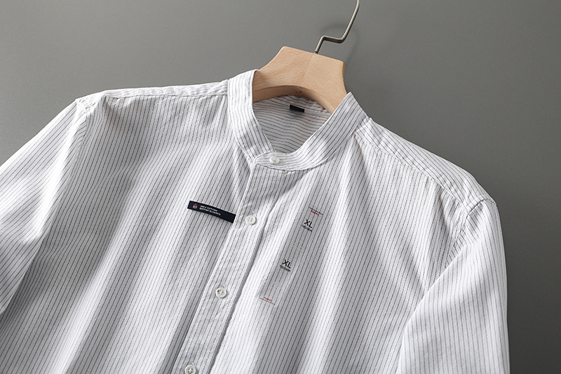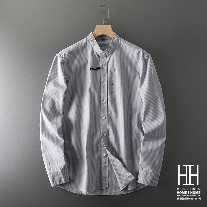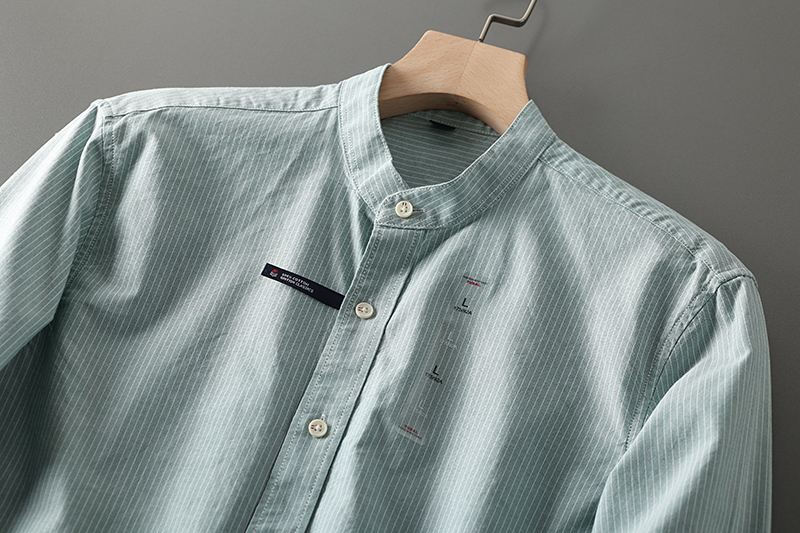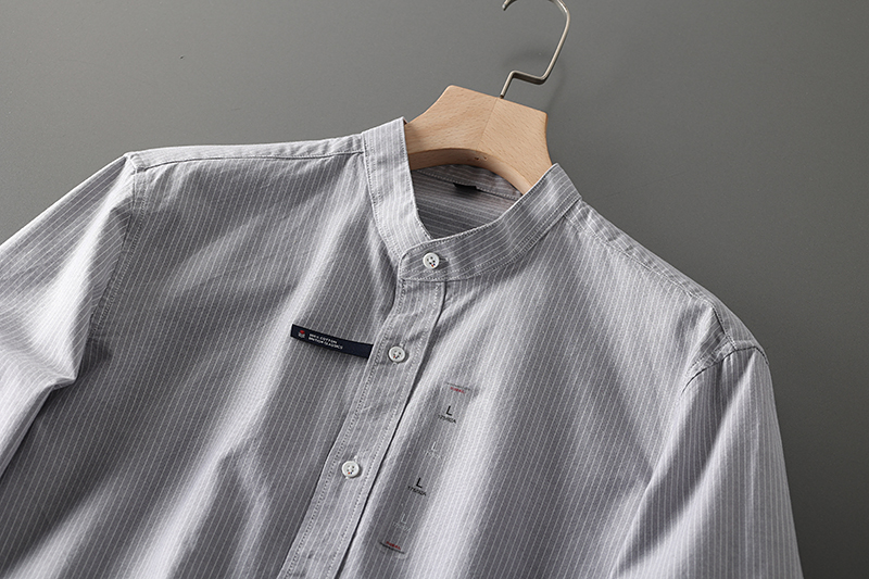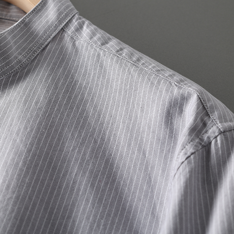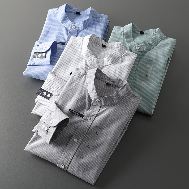 ストライプシャツ シャツ メンズ 長袖 バンドカラーシャツ カジュアル トップス メンズファッション ビジカジ キレイめ 細ストライプ柄 おしゃれ