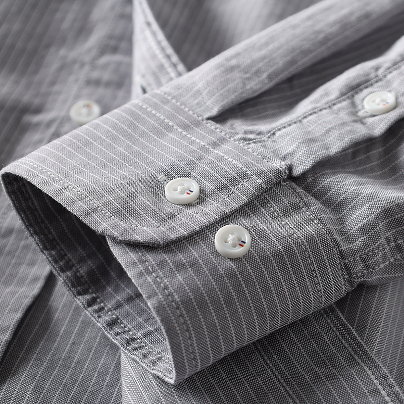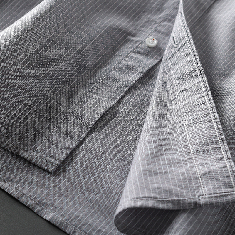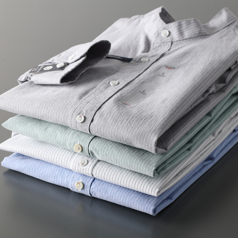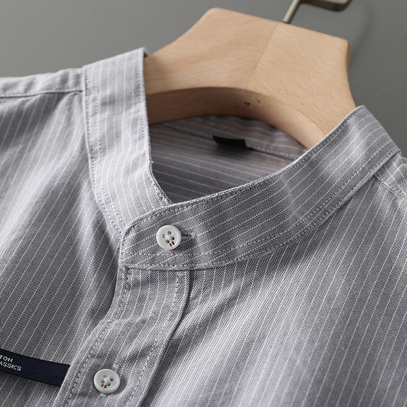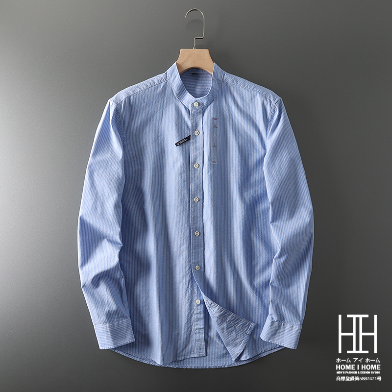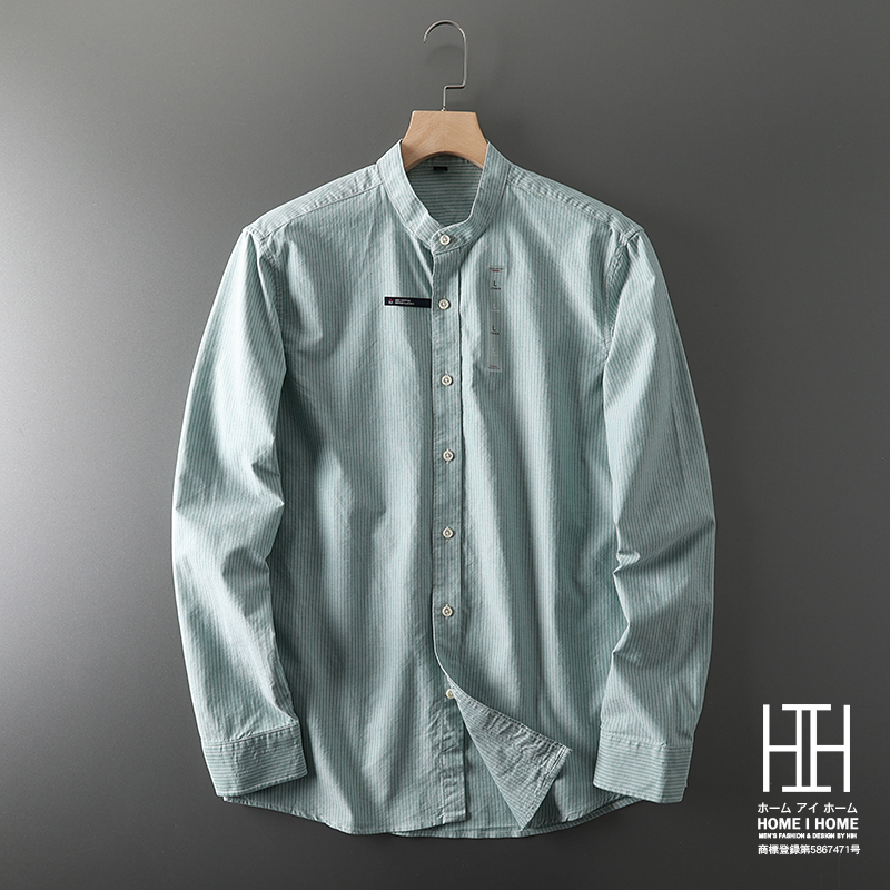 ストライプシャツ シャツ メンズ 長袖 バンドカラーシャツ カジュアル トップス メンズファッション ビジカジ キレイめ 細ストライプ柄 おしゃれ