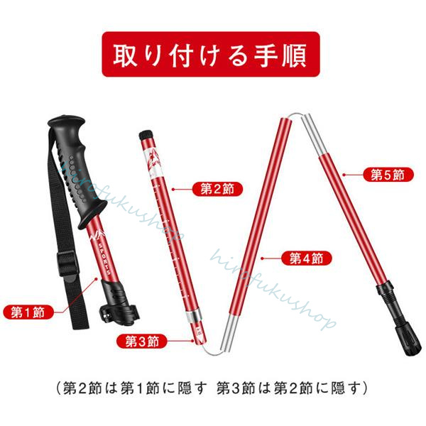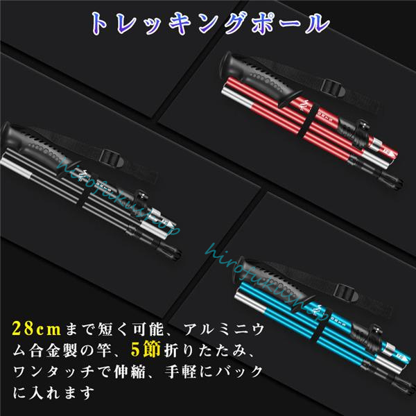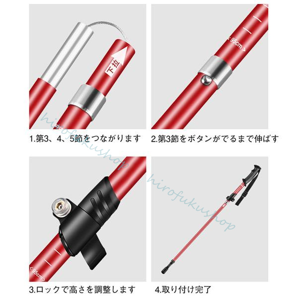 トレッキングポール アルミニウム合金製 伸縮式 アウトドア 5段階調