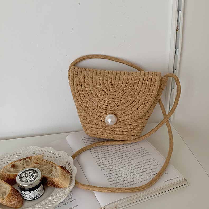 ストロー かごバッグ レディース カゴバッグ ワンポイントパール付き ショルダーバッグ ミニバッグ 夏 オシャレ ショルダー