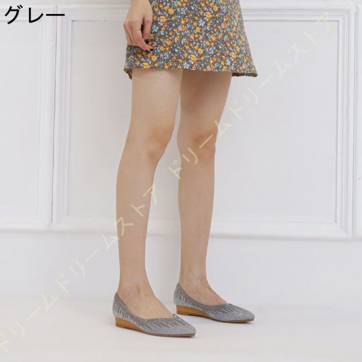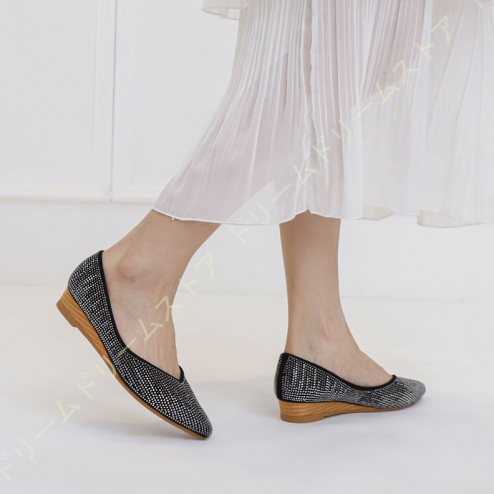 歩きやすく履きやすいウェッジヒール。ストームがついている、高低差を緩和し、足への負担を軽減。