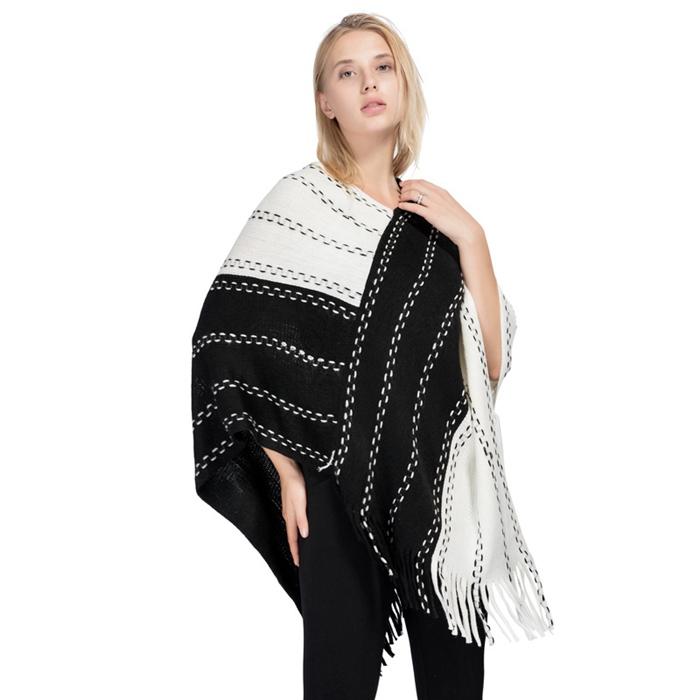 ストール ポンチョ ポレロ 大判 ショール 秋冬 大判ストール ニット ケープコート 防寒着 レディース フリンジ