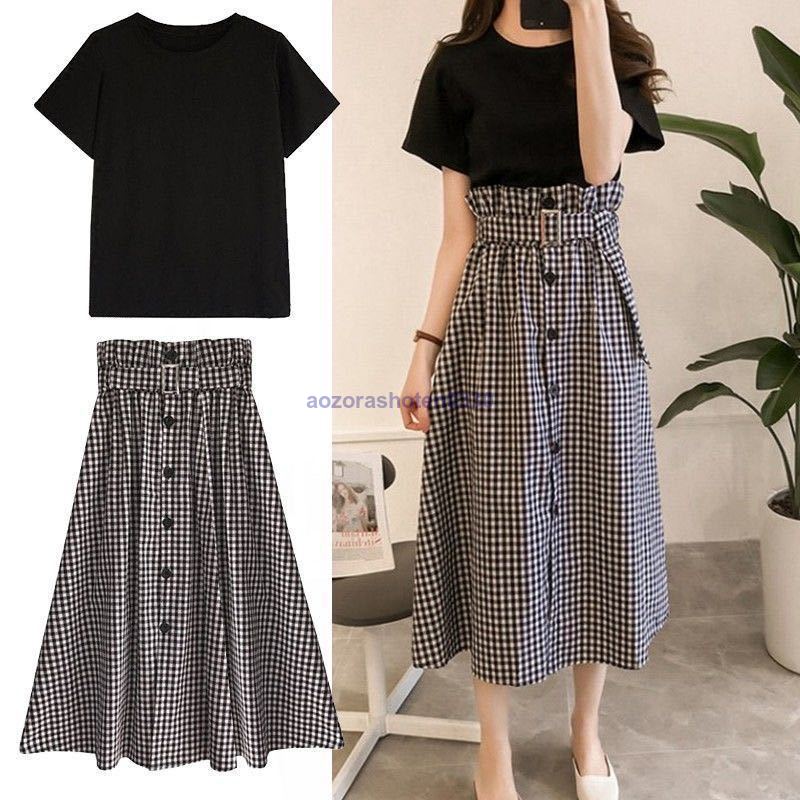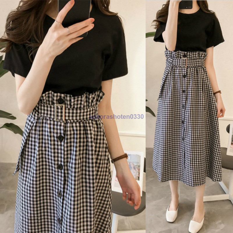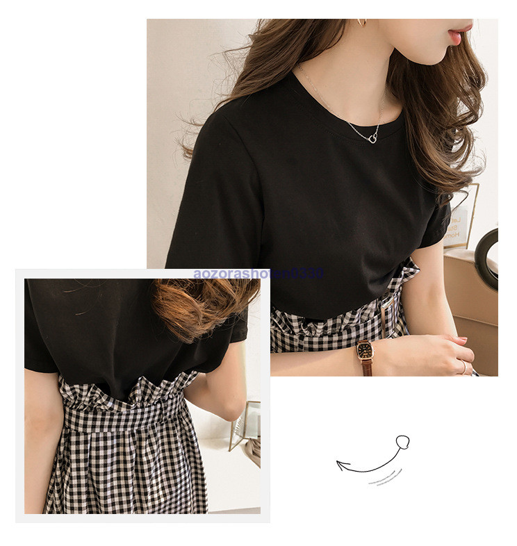 カラー 黒Tシャツ+チェック柄 白Tシャツ+ブラック