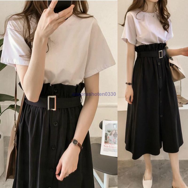 上下セット セットアップ レディース 半袖 ゆったり楽ちん Tシャツ 体型カバー フ