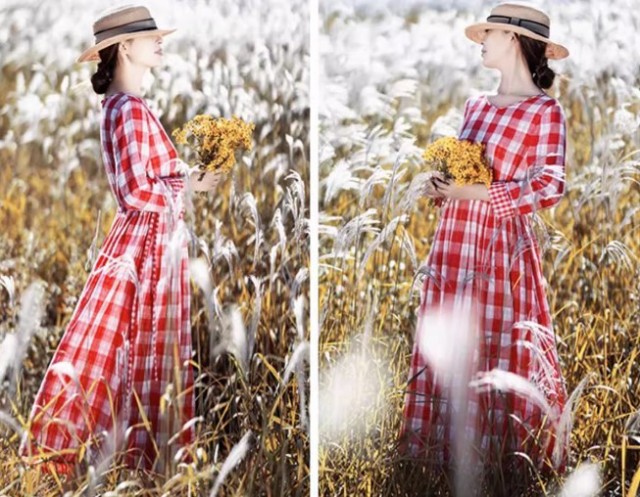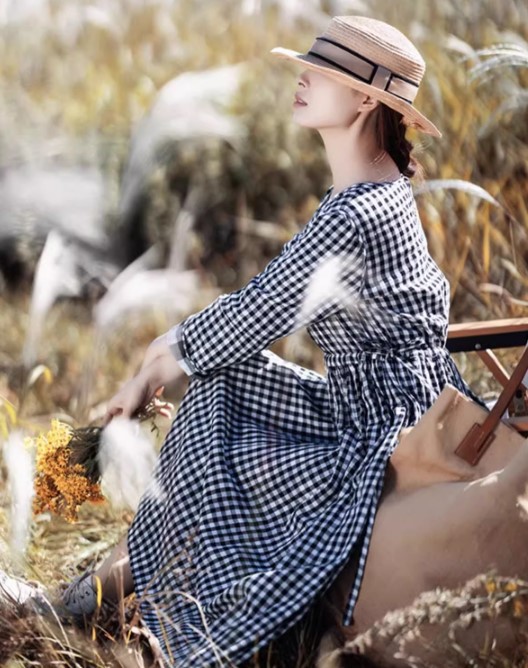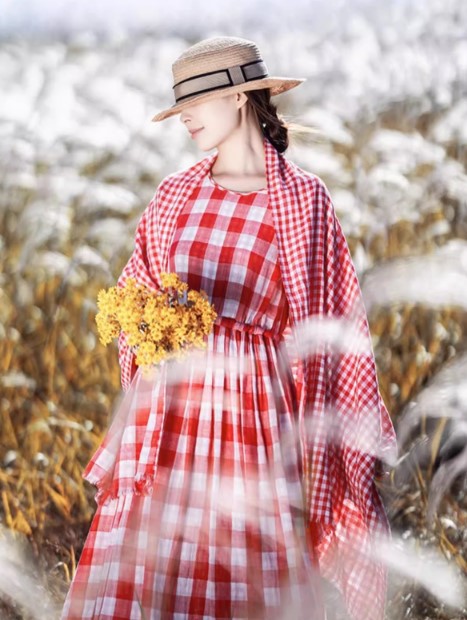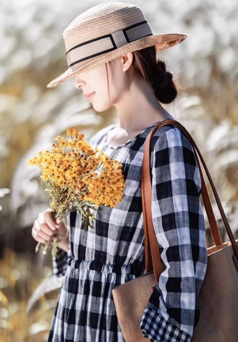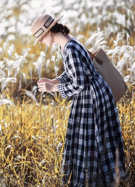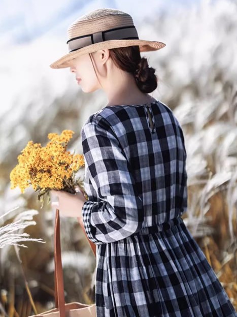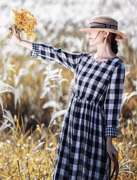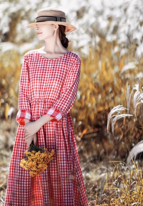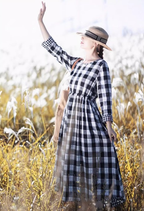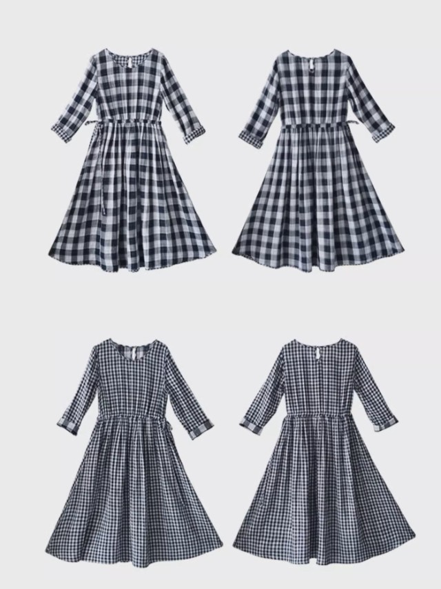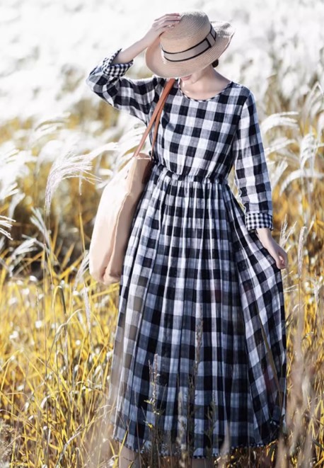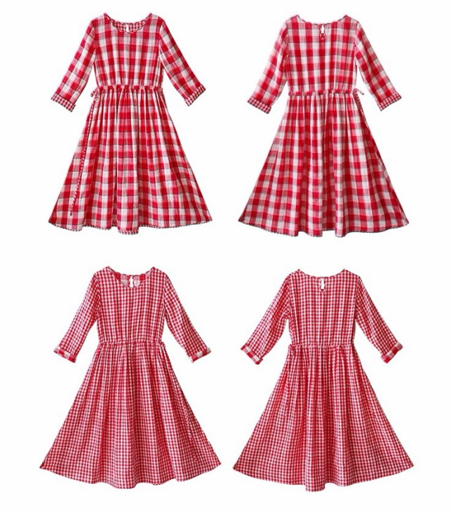 ギンガムチェック ロングワンピース 長袖 マキシ丈 ワンピース レディース カジュアル マキシワンピース リバーシブル 大きいサイズ 秋 春 丸首 ウエストマーク