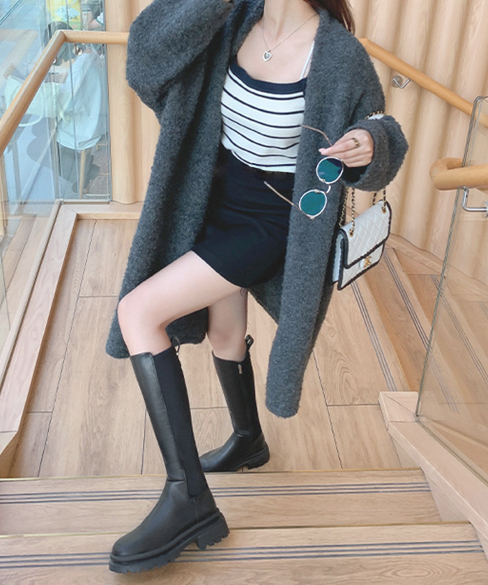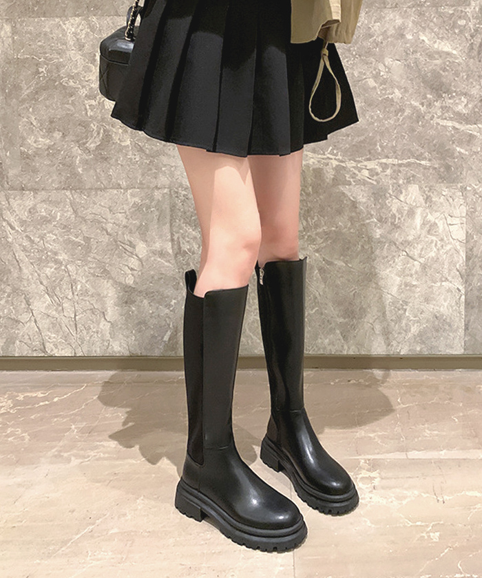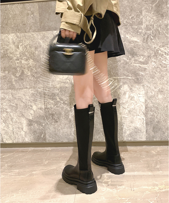 脚にフィットし美脚見えするタンクソールロングブーツ♪