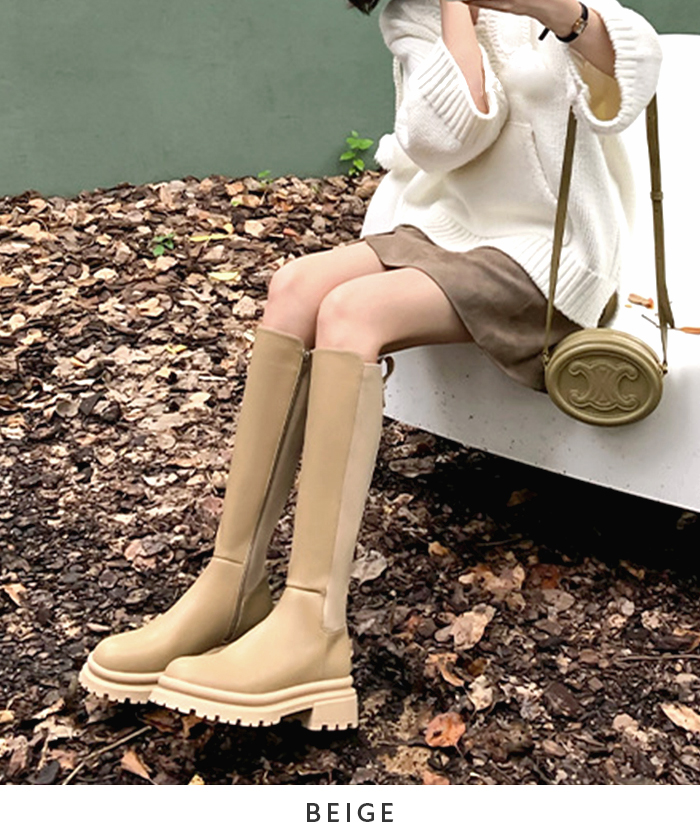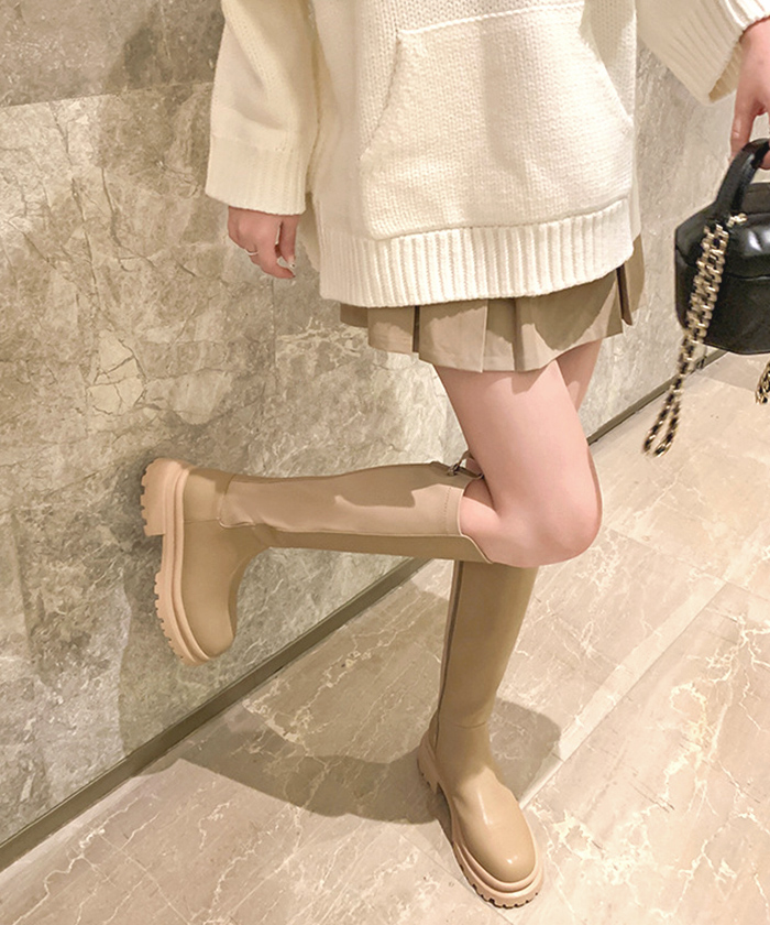 ブーツ レディース 秋 冬 ロング 厚底 スリムフィットタンクロングブーツ きれいめ 韓国ファッション 韓国コーデ 高