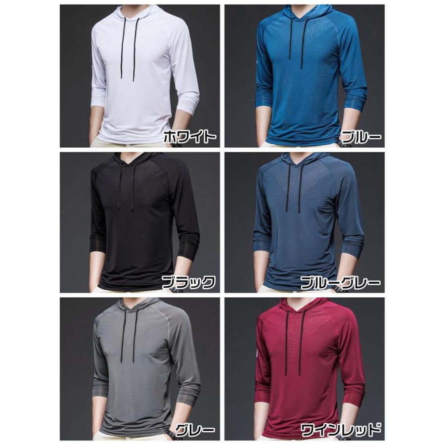 長袖メンズ 通気性 速乾性 パーカ フード付き プ