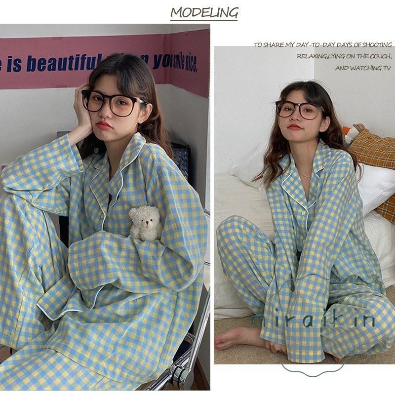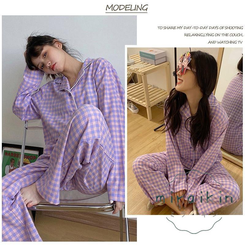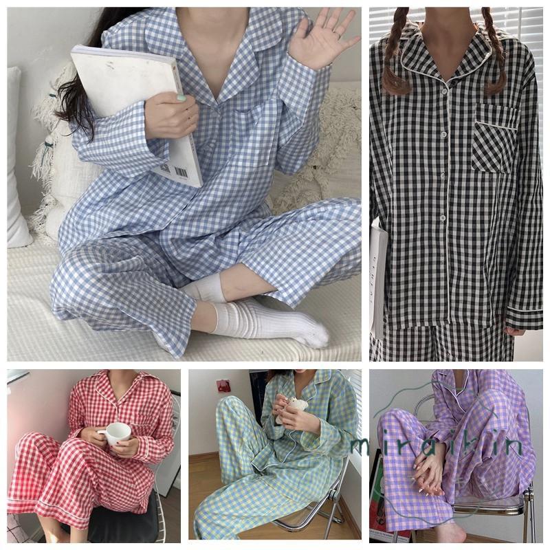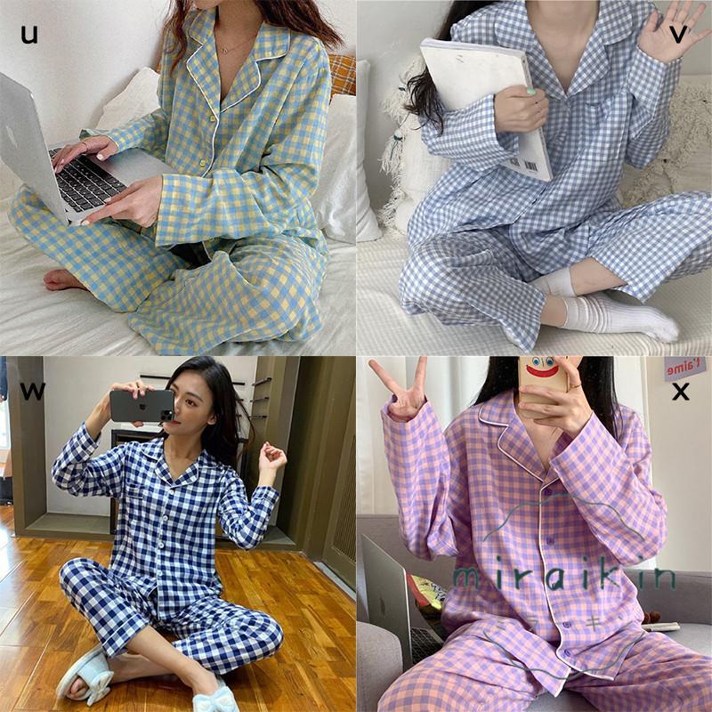 ルームウェア 長袖 レディース チェック柄 パジャマ ギンガムチェック 2点セット 可愛い 部屋着 セットアップ ナイトウェア リラックス 20代 30代 40代 50代