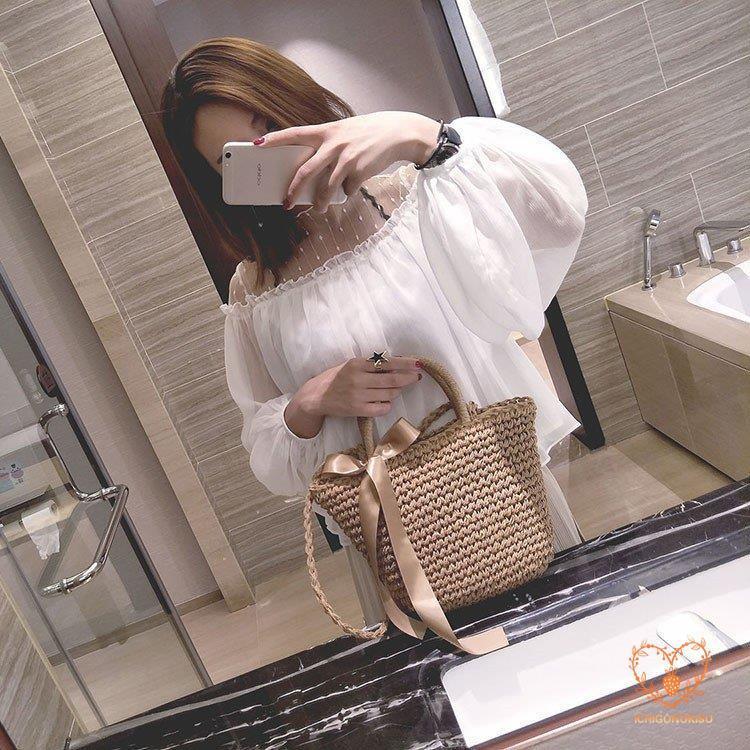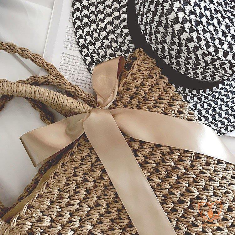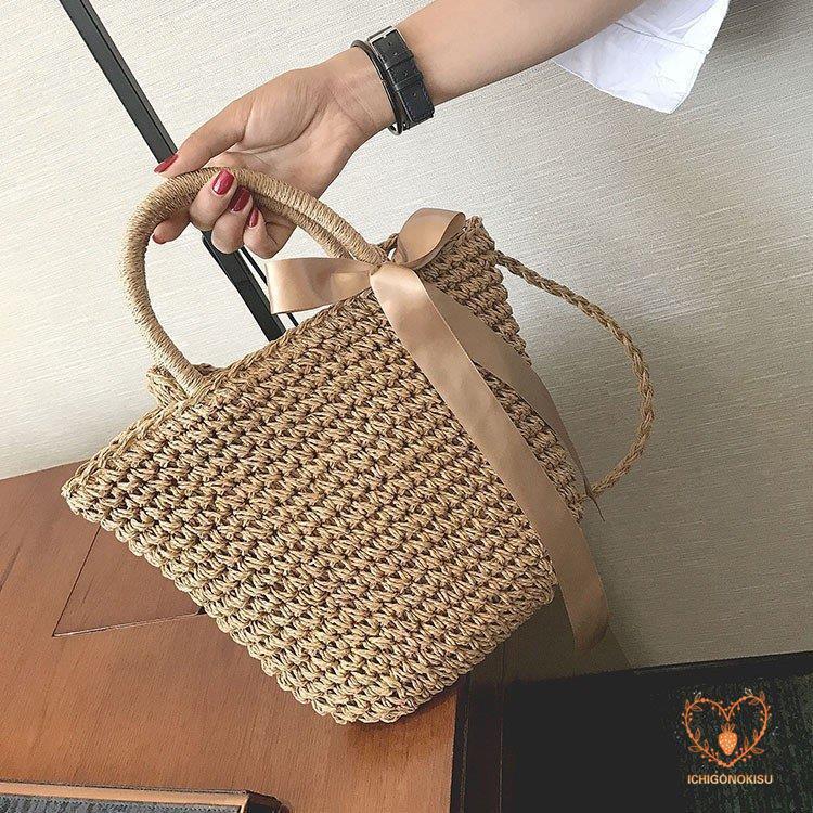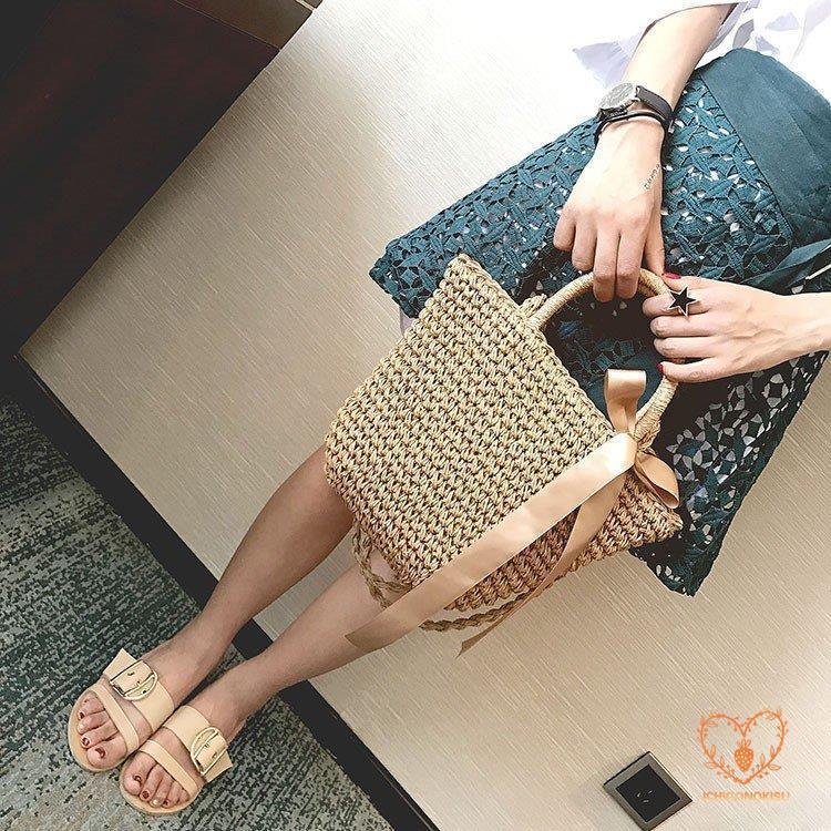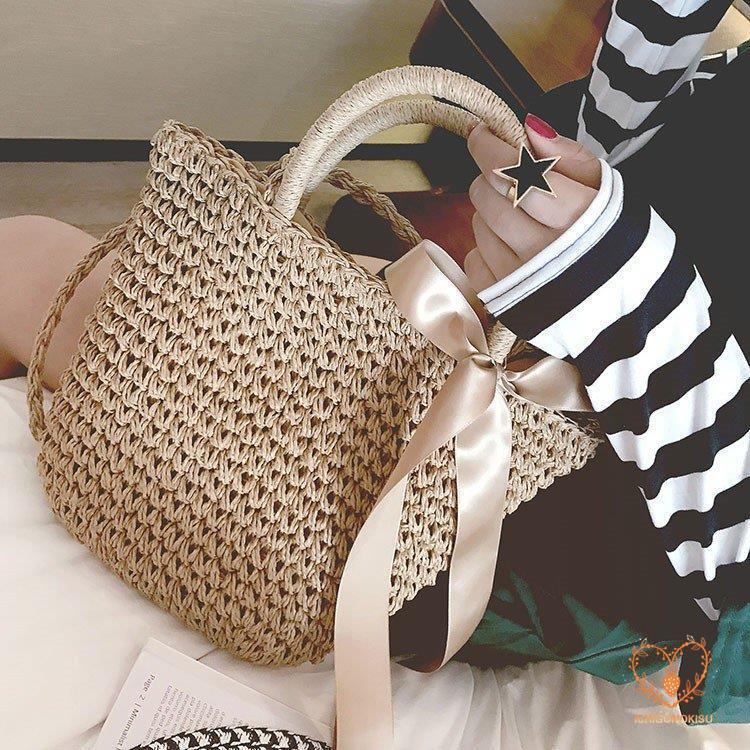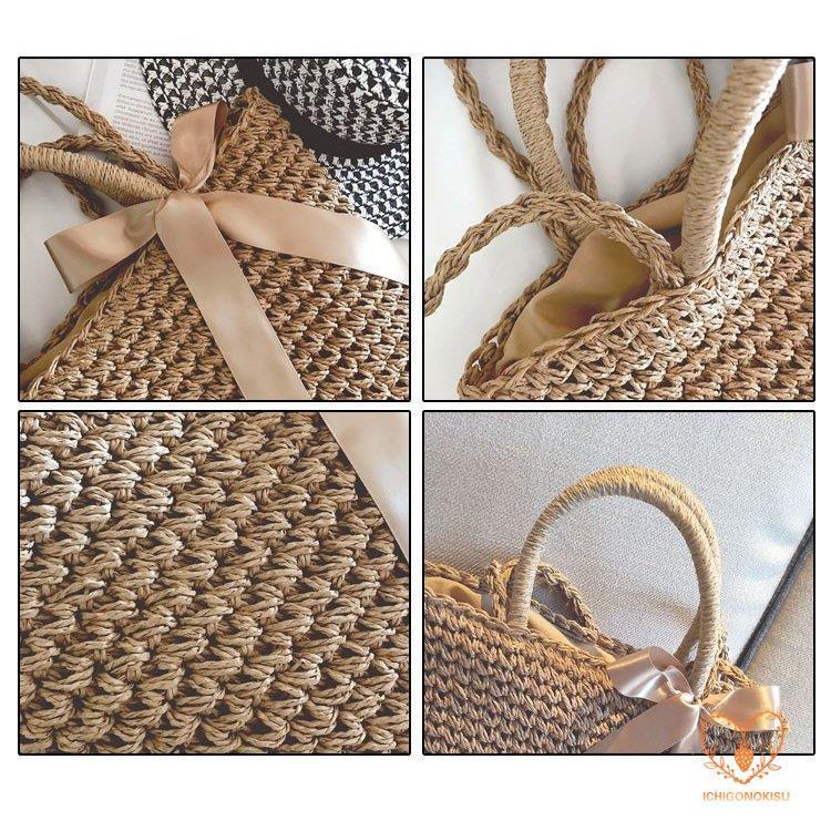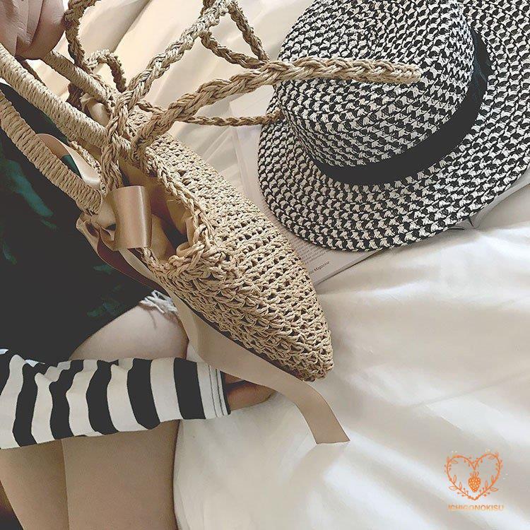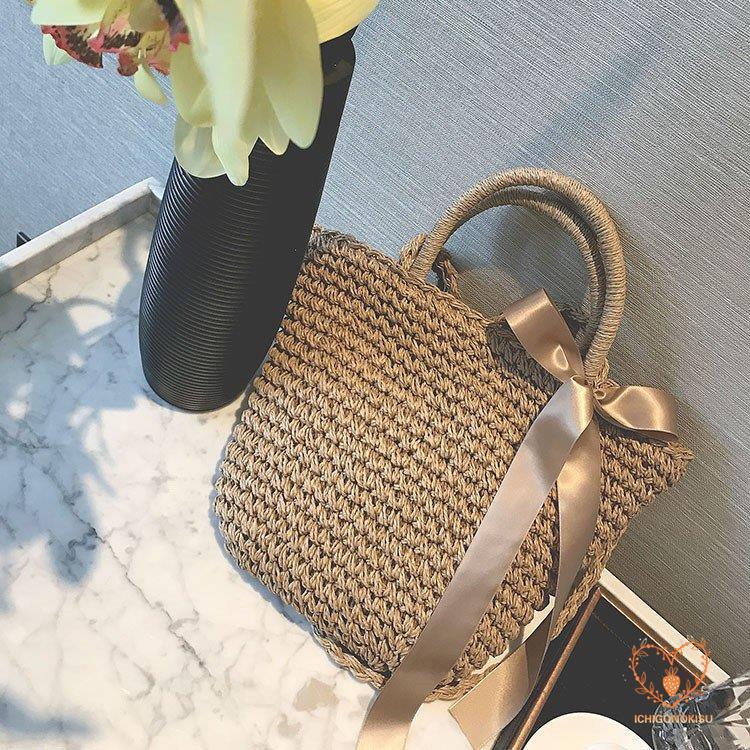 カゴバッグ トートバッグ ショルダーバッグ 2WAY 鞄 夏 リボン 海 ピクニック 大容量 編み バスケット 内布付き かごバッグ レディース アウトドア 手持ち