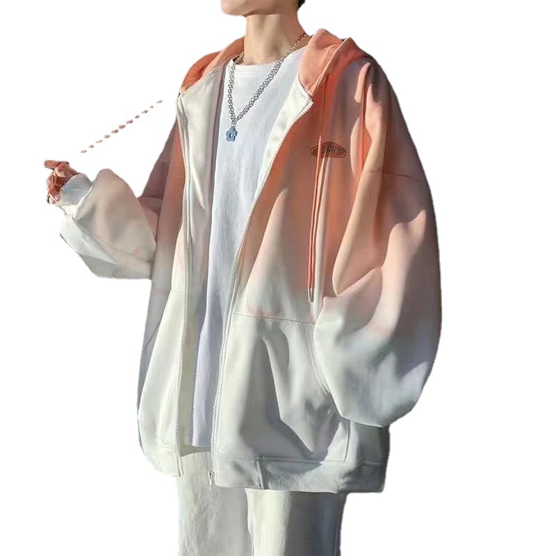メンズ ジップ グラデーション 長袖 アウター 春 ジャケット スウェット ゆったり トレーナー 学 フード付き 大きいサイズ トップス 秋