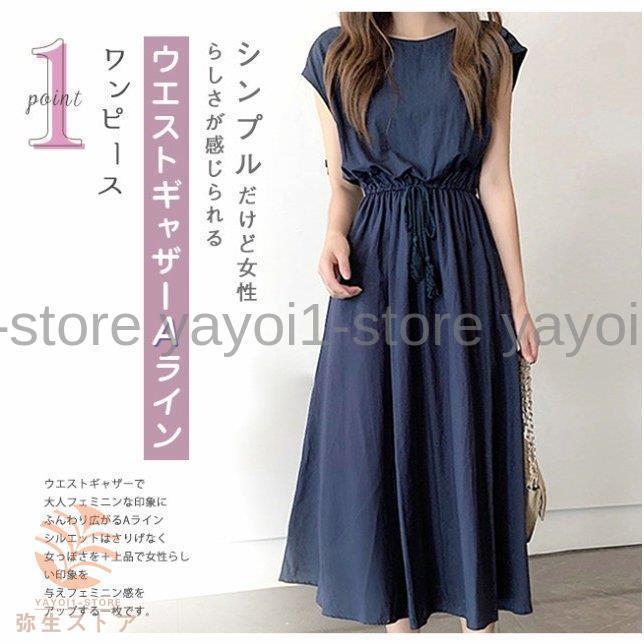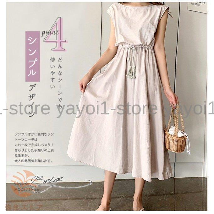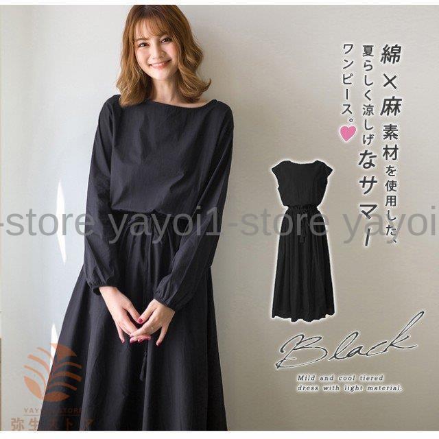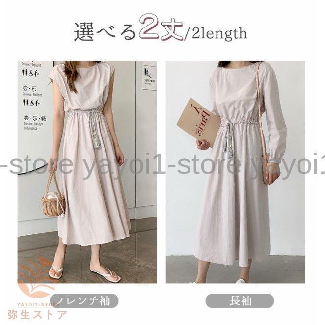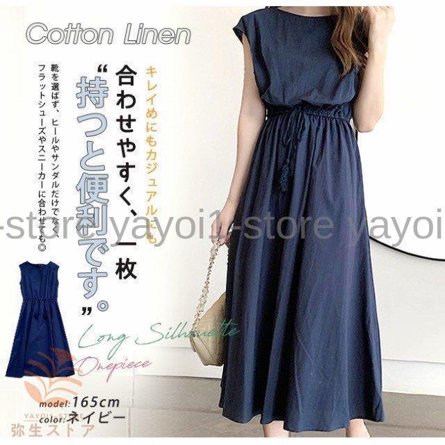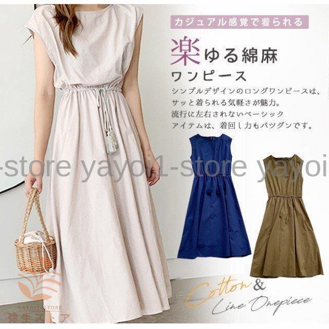 綿麻フレアワンピース レディース ロング丈 Aライン フレンチ袖 コットン リネン ロングワンピース 涼 マキシ 無地 半袖