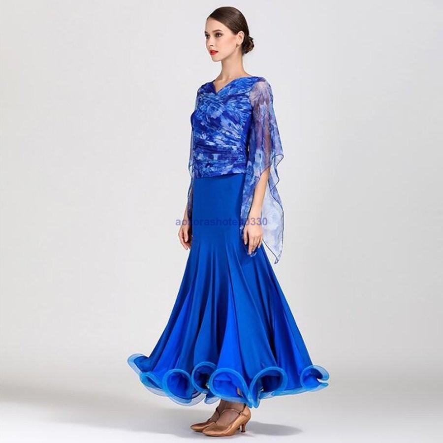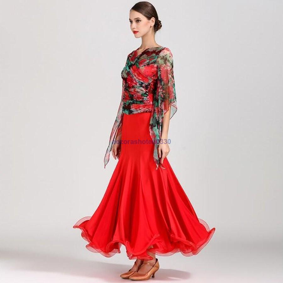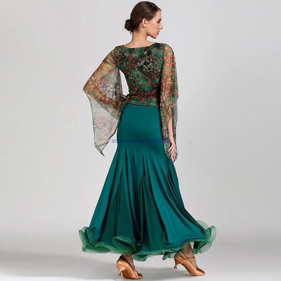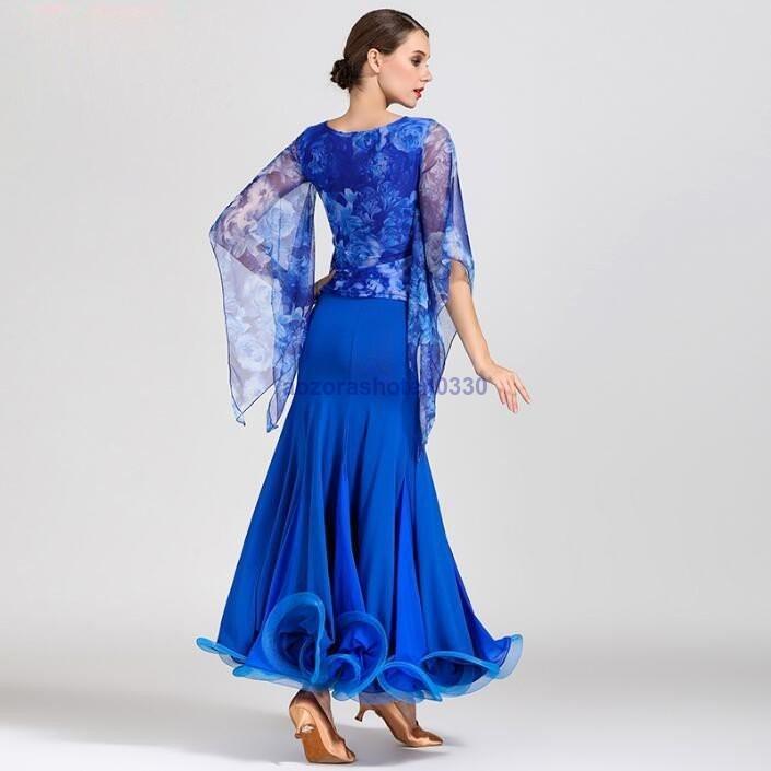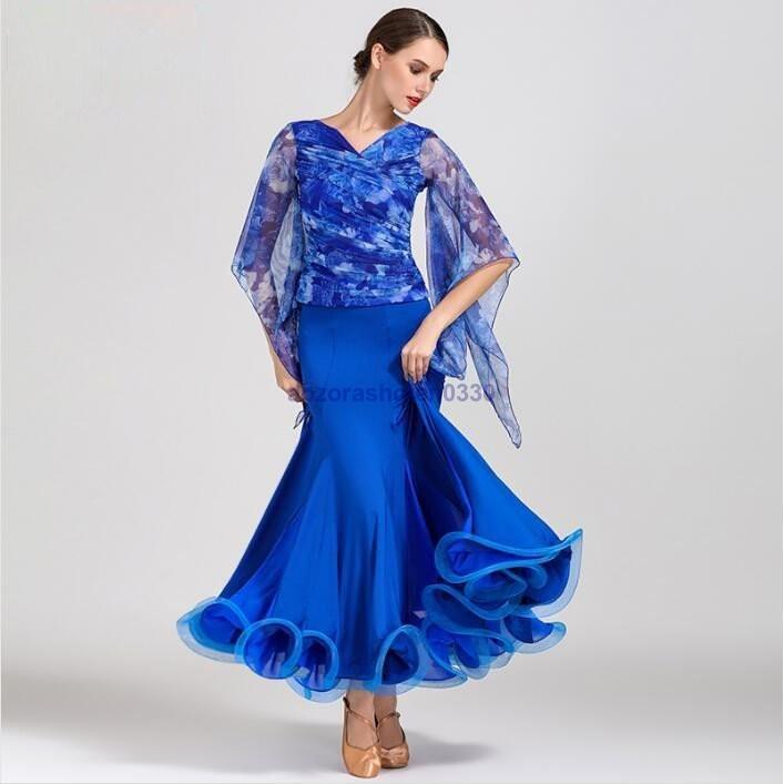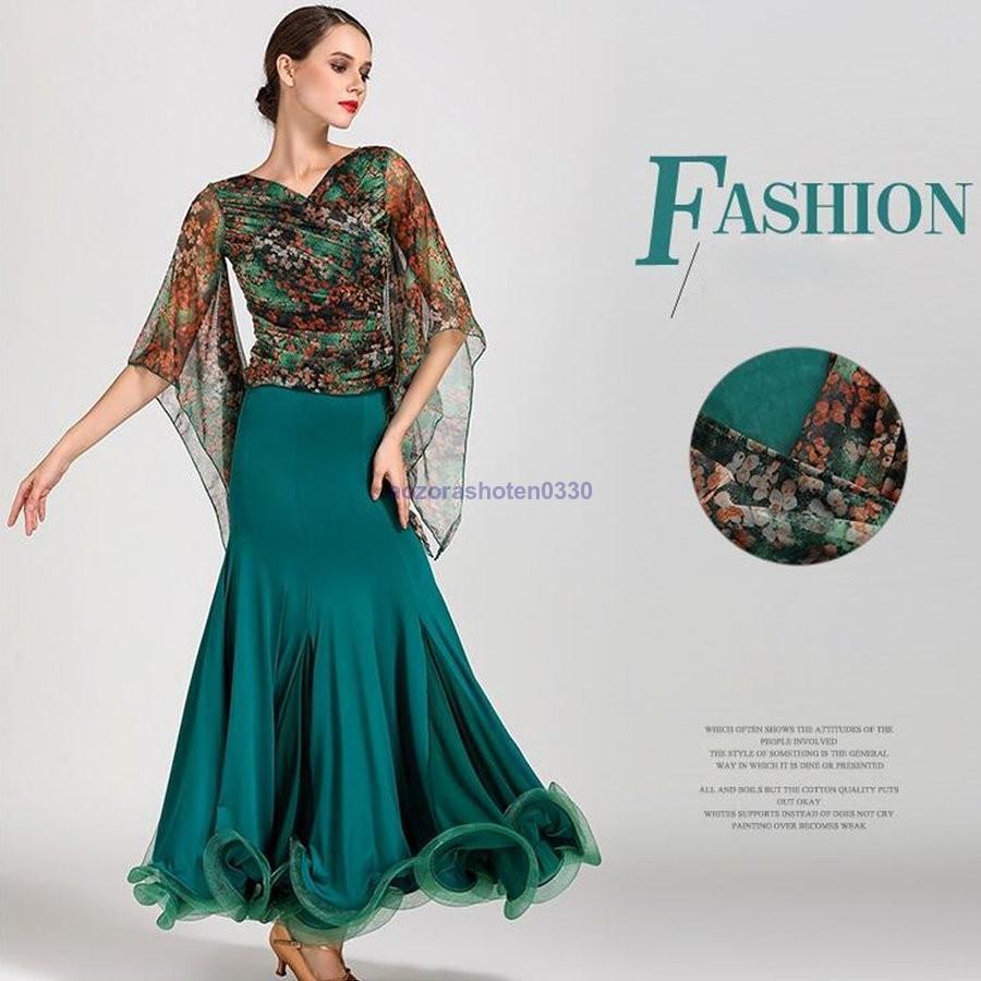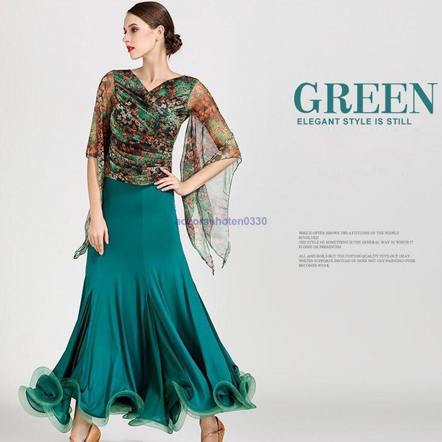 社交ダンス モダンダンス衣装 トップスとスカート2点セット ワルツ専用 ロングスカート広く裾 ルンバ 練習競技着デモ用 サンバ スタンダード発表会用演出服