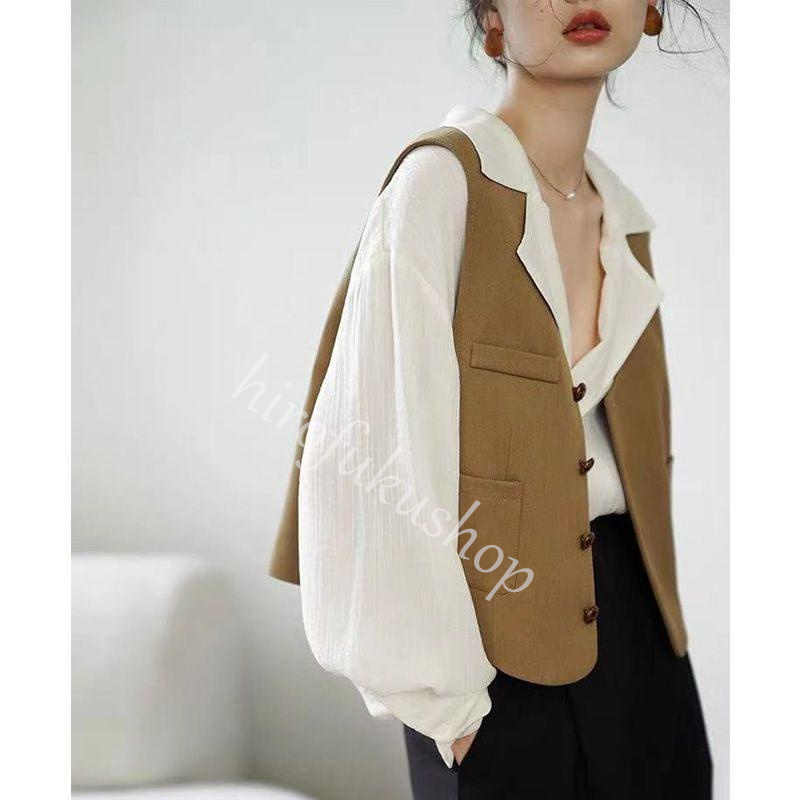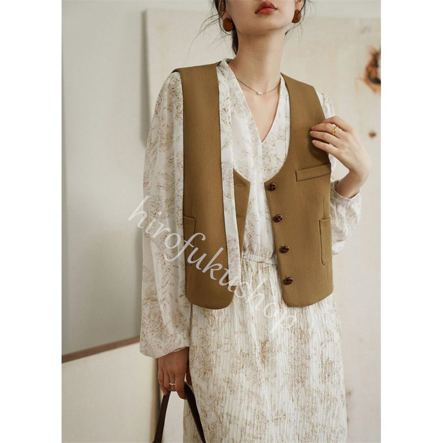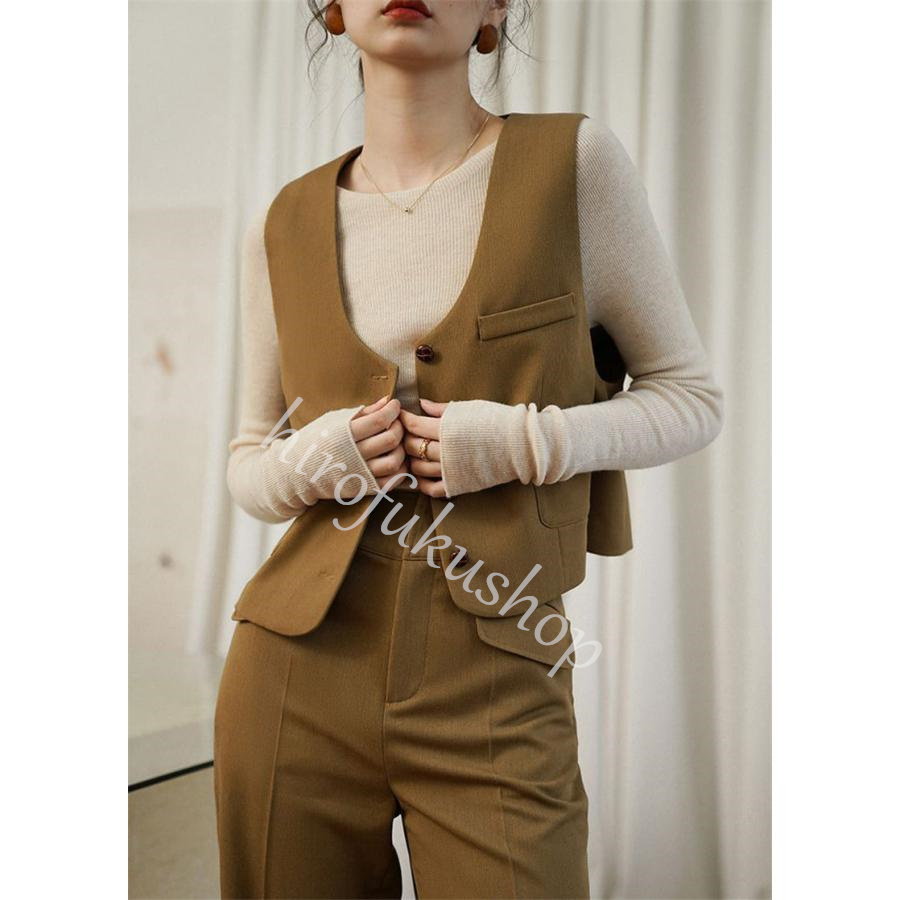 ジレ レディース ベスト テーラードベスト チョッキ アウター おしゃれ ノースリーブ カジュアル 体型カバー 前開き トップス コーデ ゆった