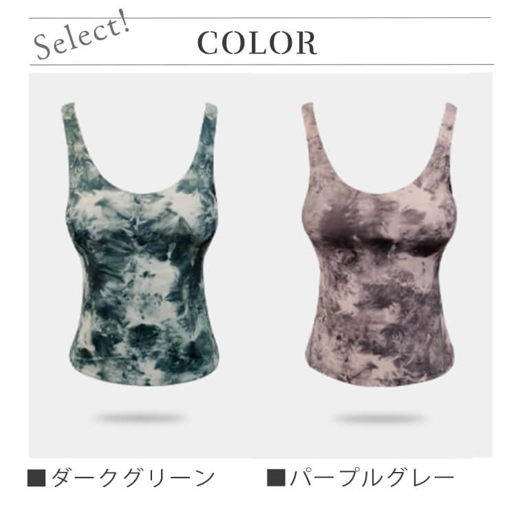 迷彩柄風の絞り染めマーブルプリント柄デザインがおしゃれなフィットネストップス。