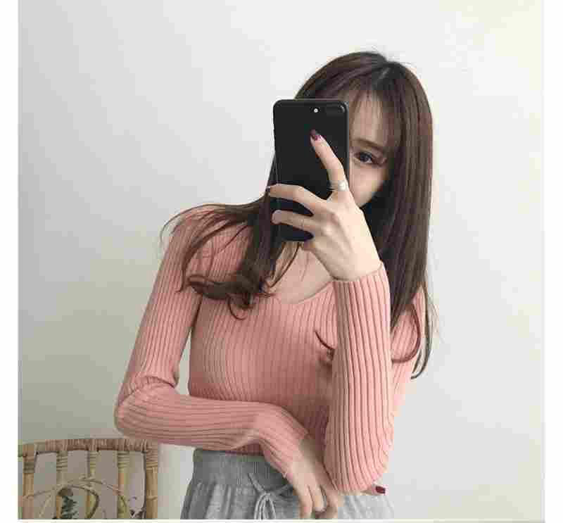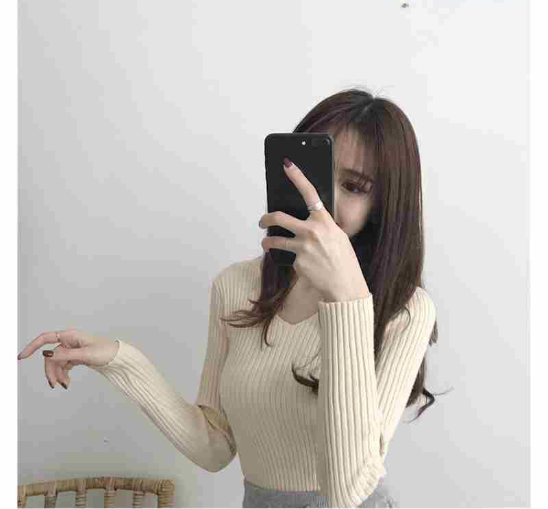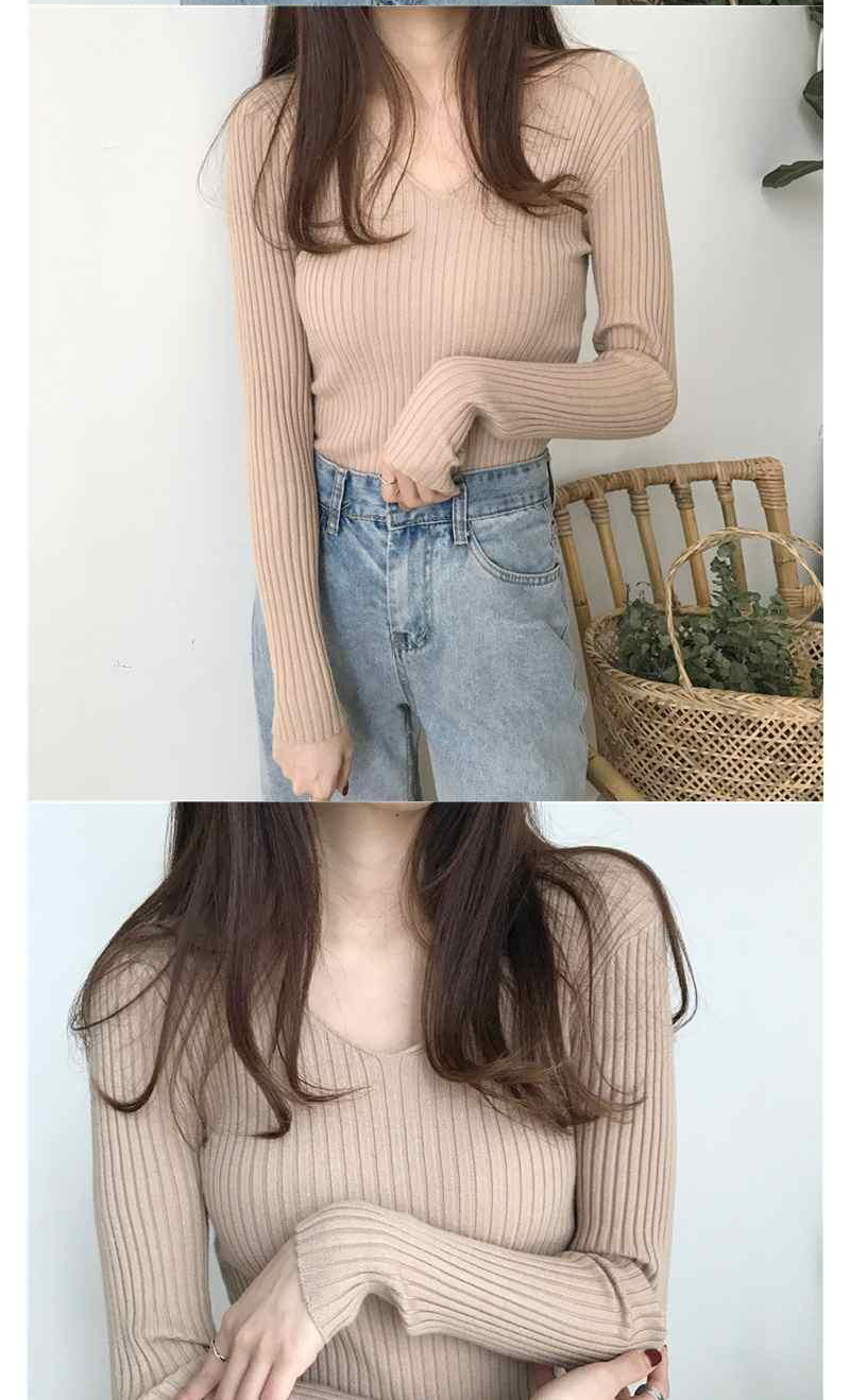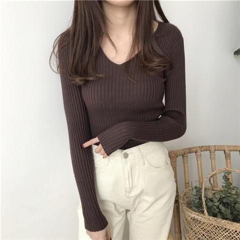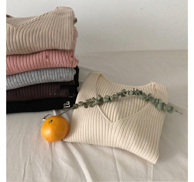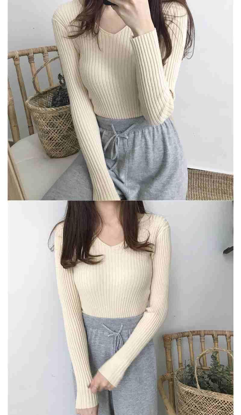 商品説明:リブニット レディース Vネック セーター 長袖 秋 冬