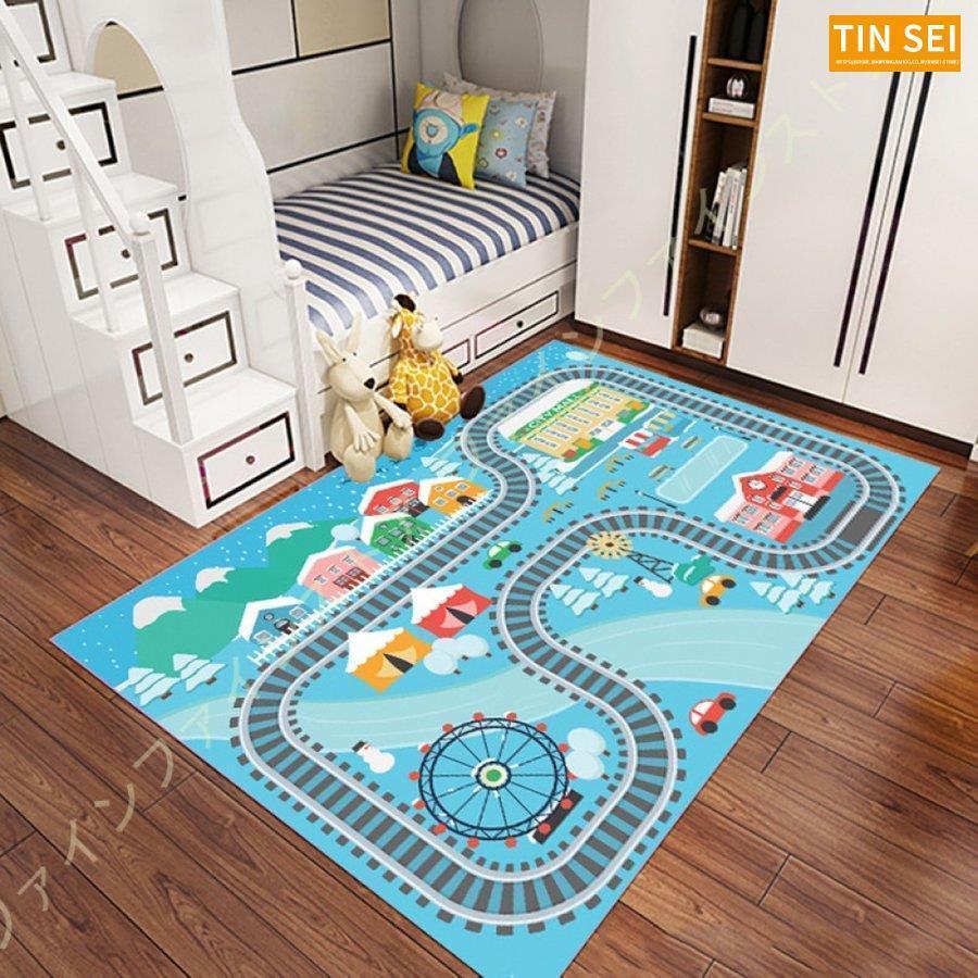 フロアマット 道路 ロードマップ 男の子 モノトーン プレイマット 玄関マット デザインラグ 遮音カーペット 軽量 通気性