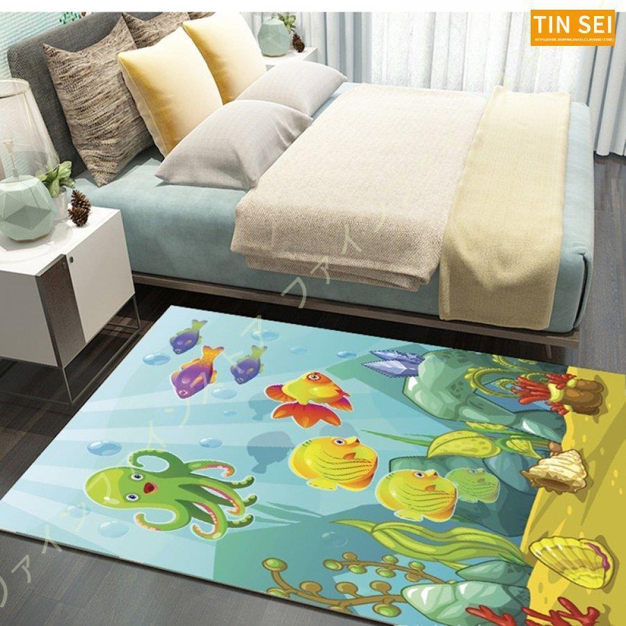 個性な絵柄のラグカーペットでおしゃれな雰囲気が目を引きます、