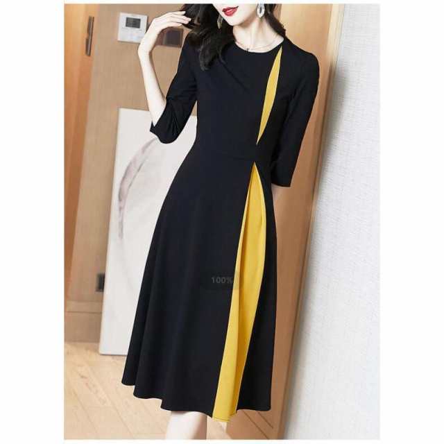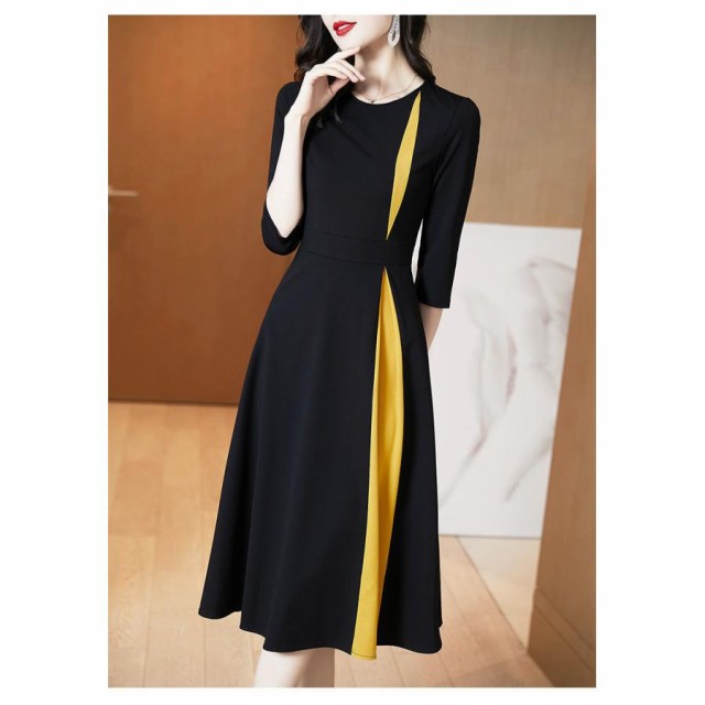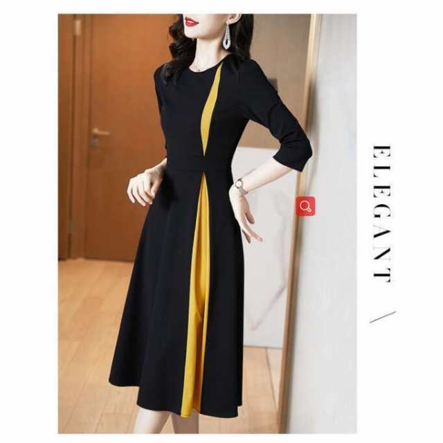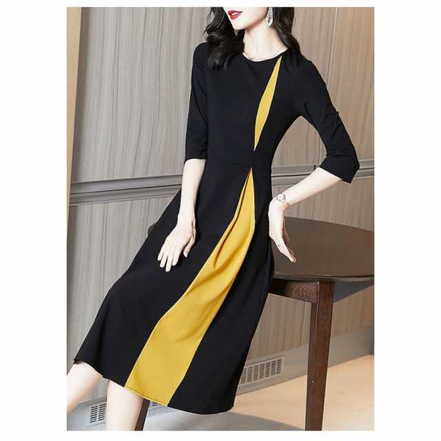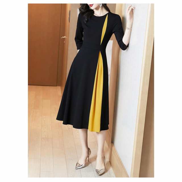 ワンピース レディース 40代 きれいめ 長袖 上品 丸首 オフィス おしゃれ 膝丈ワンピース 韓国風 春秋 大きいサイズ 通 パーティードレス