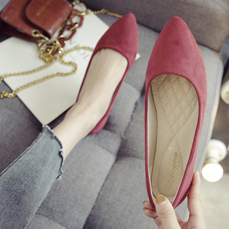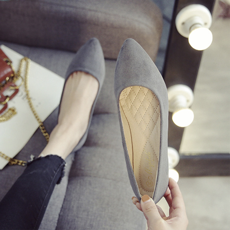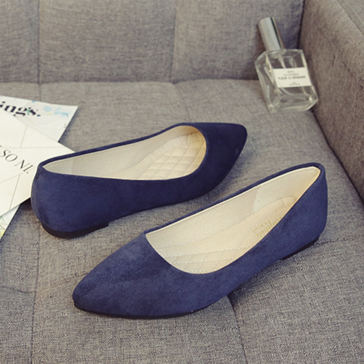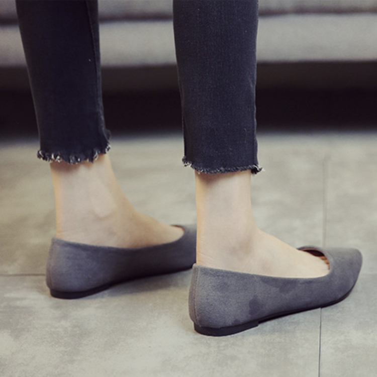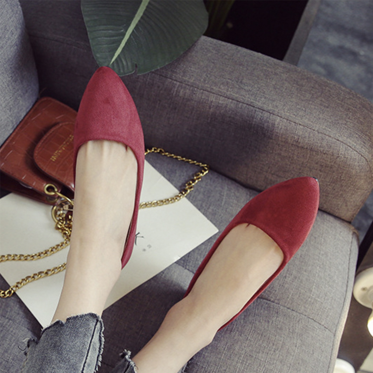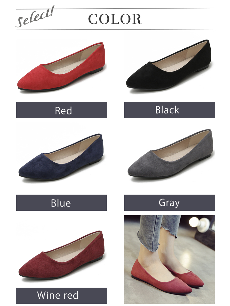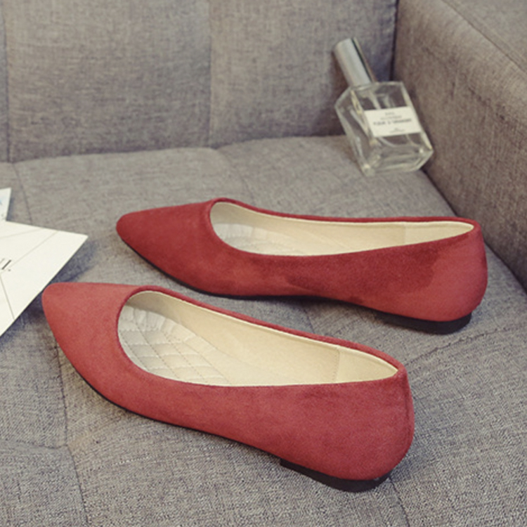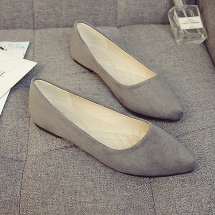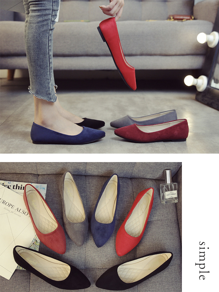 おしゃれでシンプルなスエードの快適フィットのポインテッドトゥフラットパンプス。