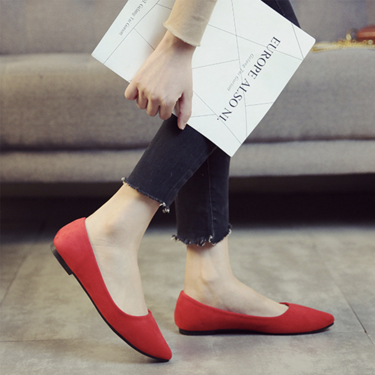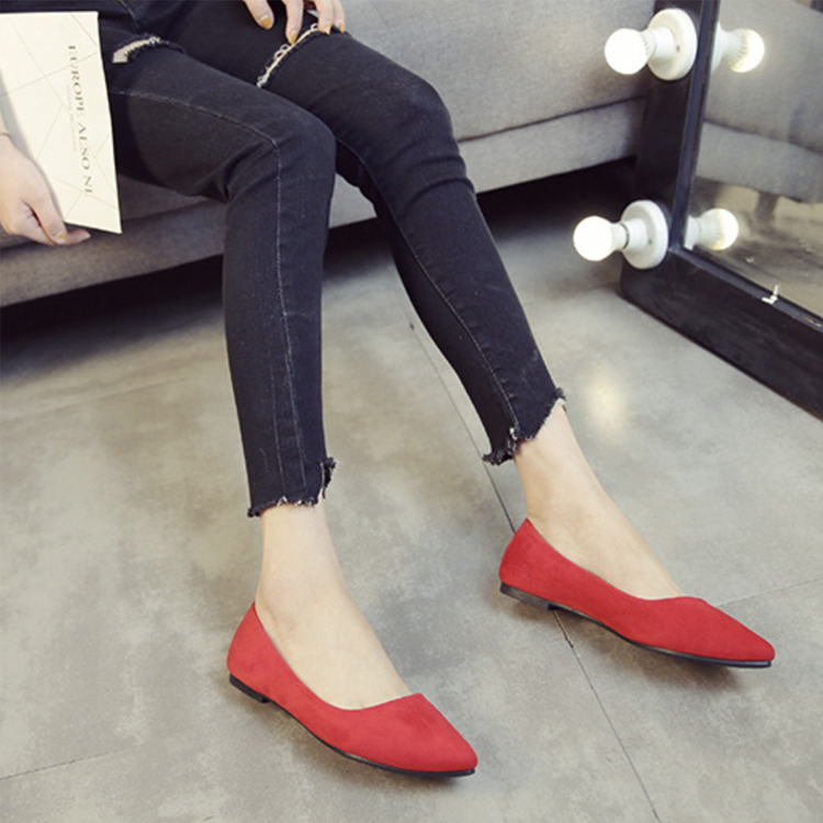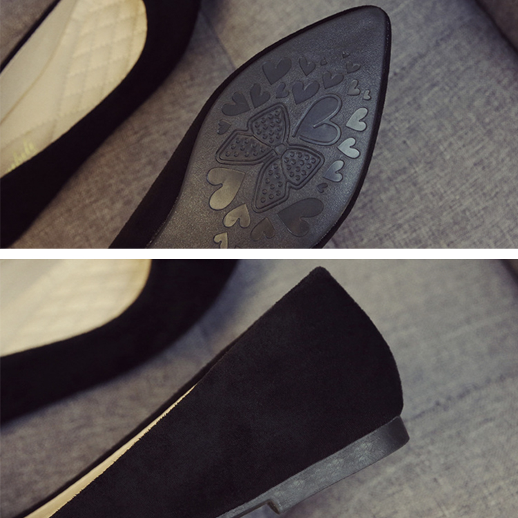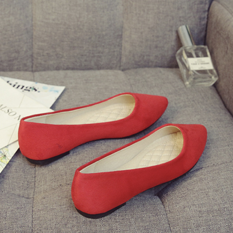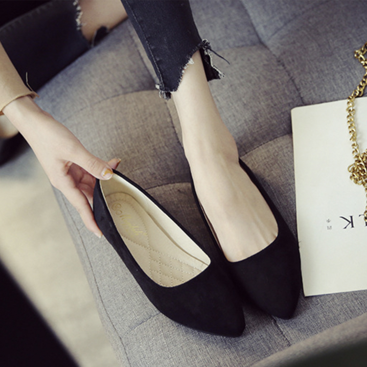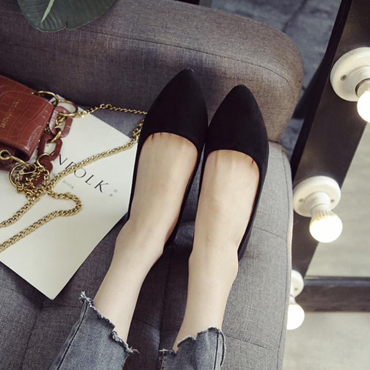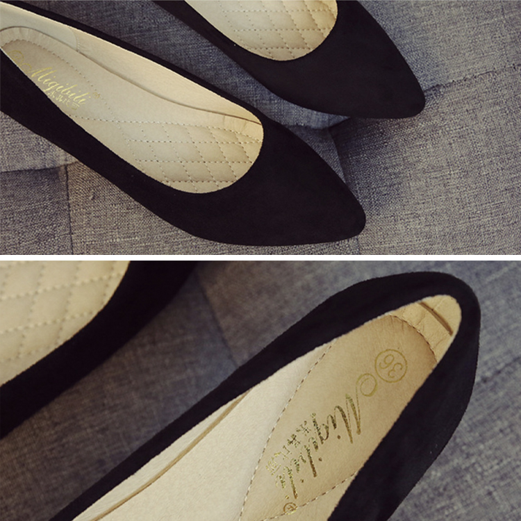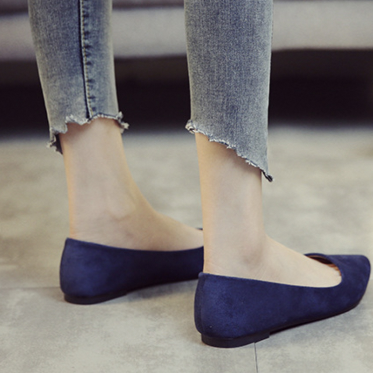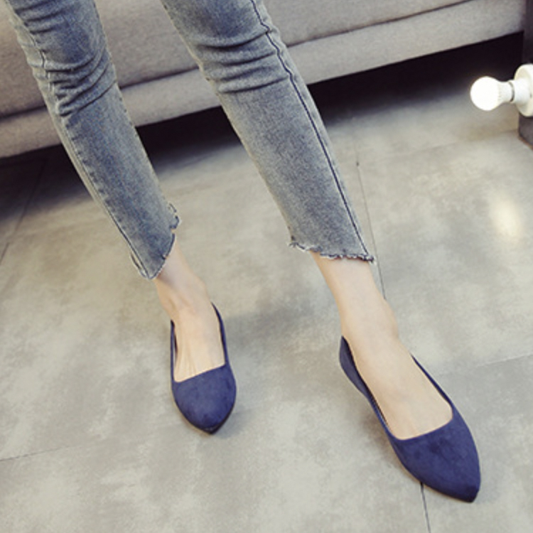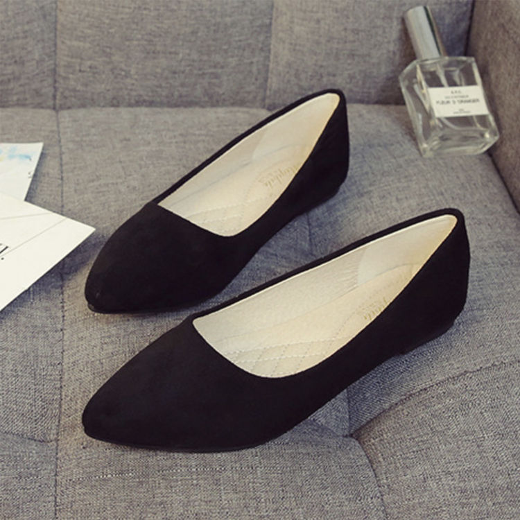 おしゃれでシンプルなスエードの快適フィットのポインテッドトゥフラットパンプス。