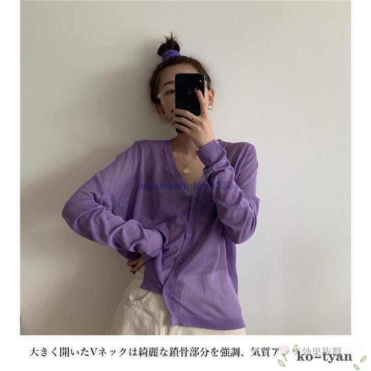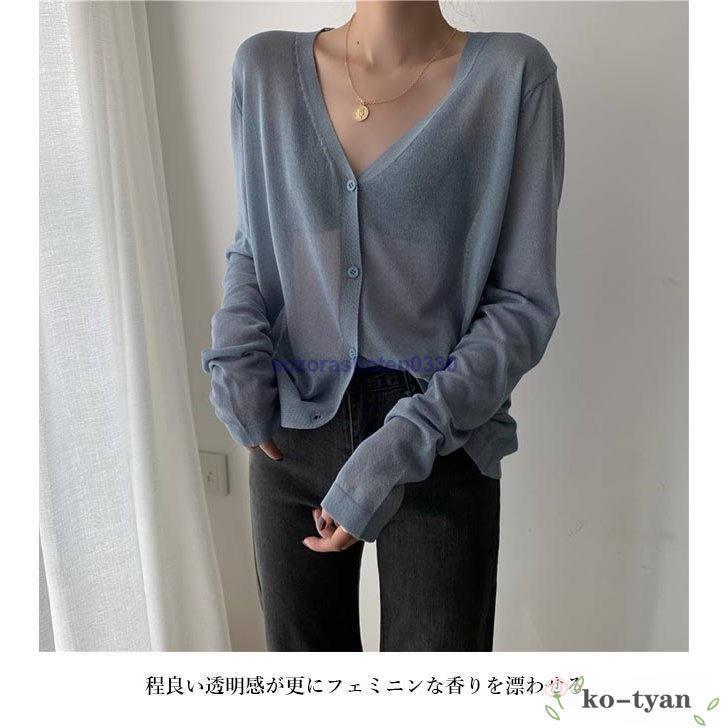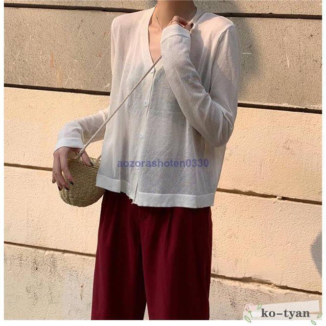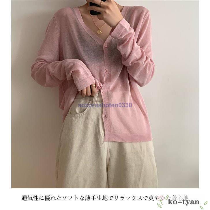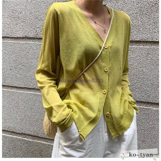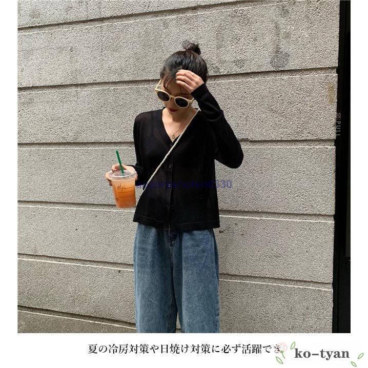 ニットカーディガン レディース 薄手 サマーカーディガン 冷房対策 カーディガン ゆったり コーディガン 夏 ボタンカーディガン 透明 Vネック