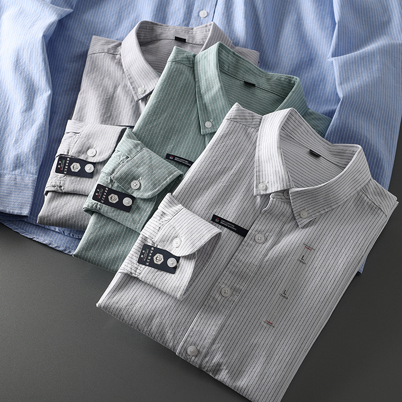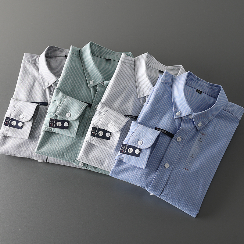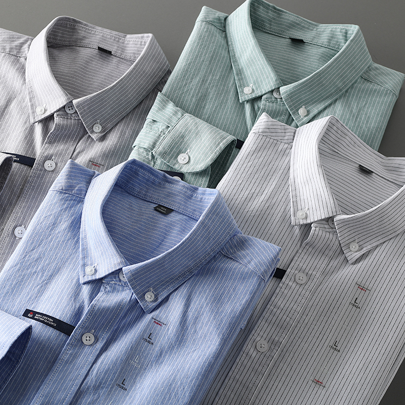 ストライプシャツ メンズ 長袖 シャツ ワイシャツ カジュアル トップス 細ストライプ柄 綿シャツ ビジカジ メンズファッション