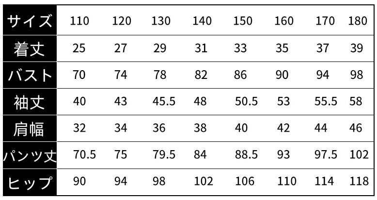 サイズ 110CM 120CM 130CM 140CM 150CM 160CM 170CM
