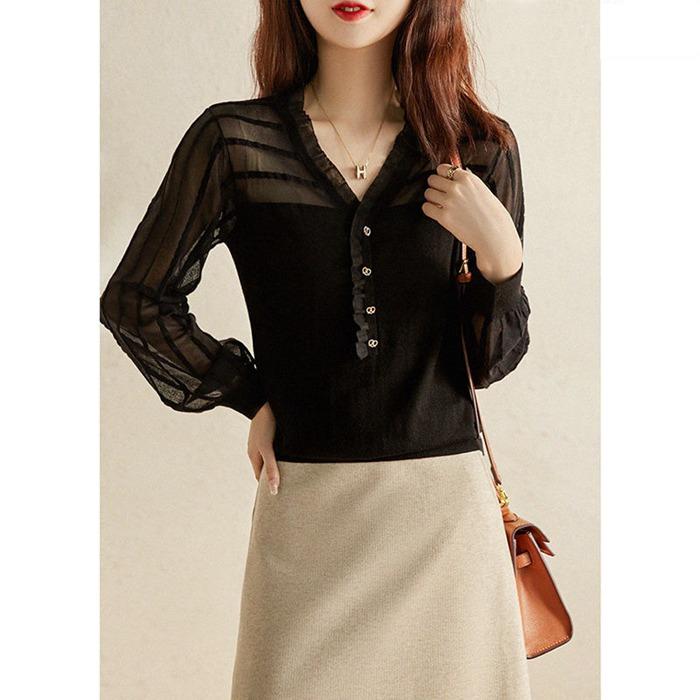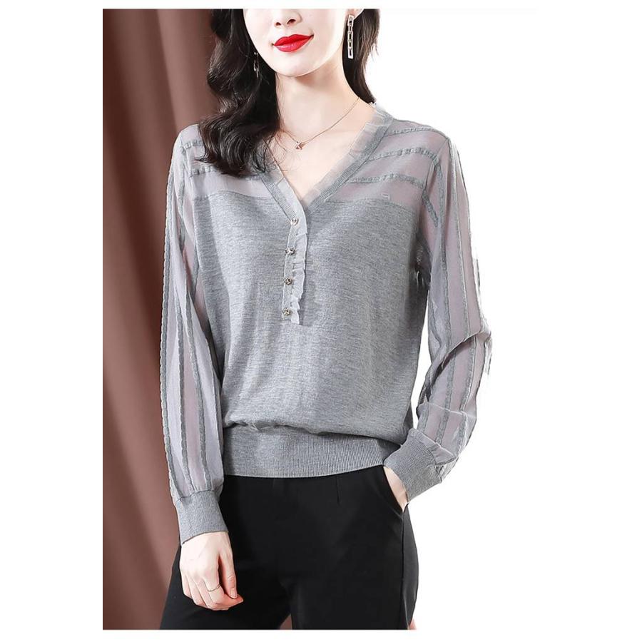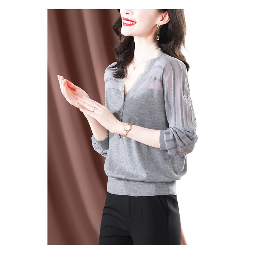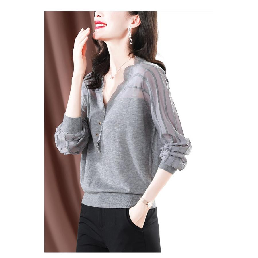 ニットトップス レディース シースルー ニット 長袖 Vネック トップス 無地 女性 カジュアル おしゃれ かわいい ファッション 通勤 春 秋