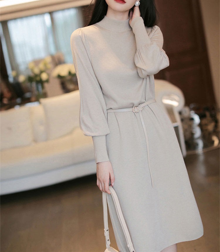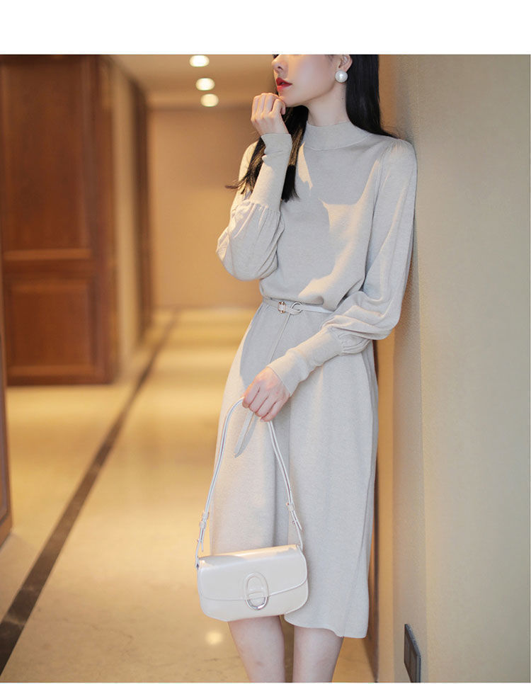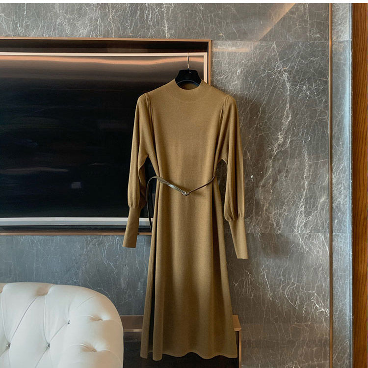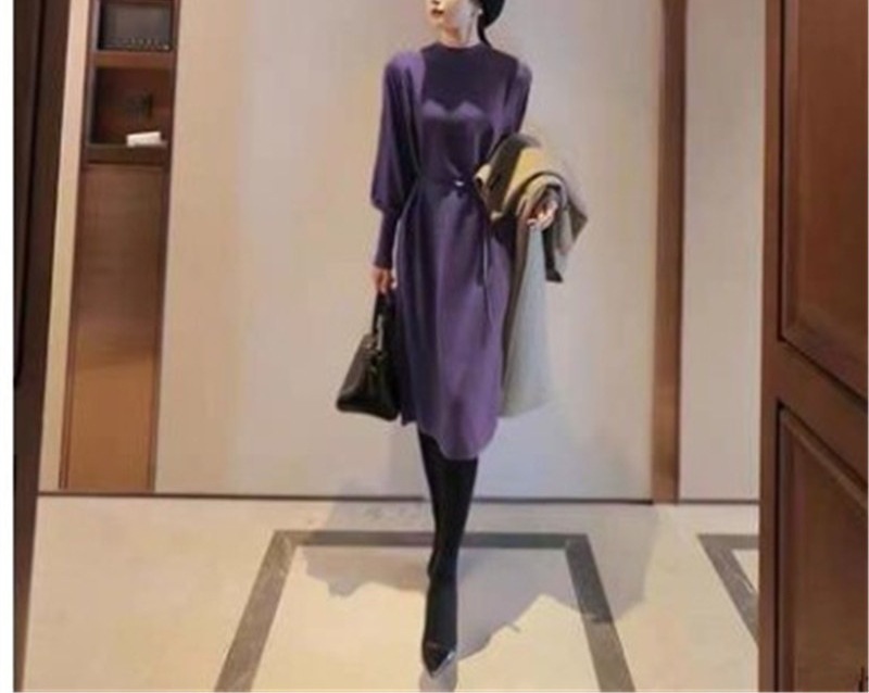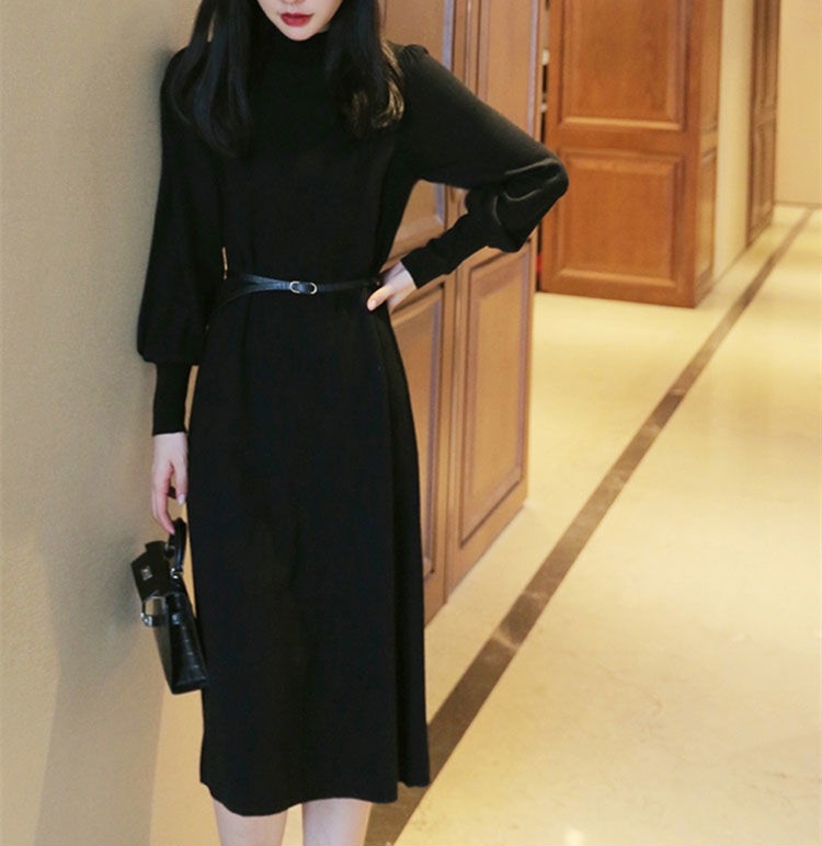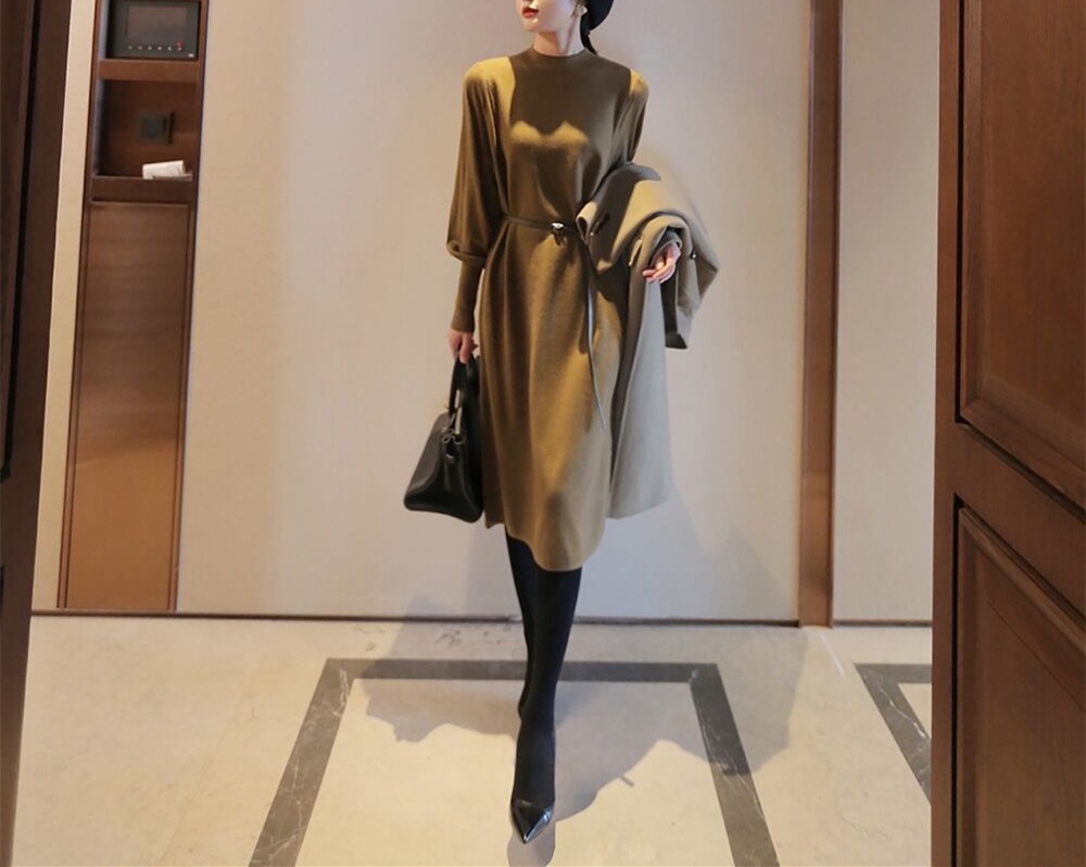 ワンピース レディース きれいめ オシャレ 春秋 ロング丈 100CM ネック 着痩せ 長袖 Fサイズ